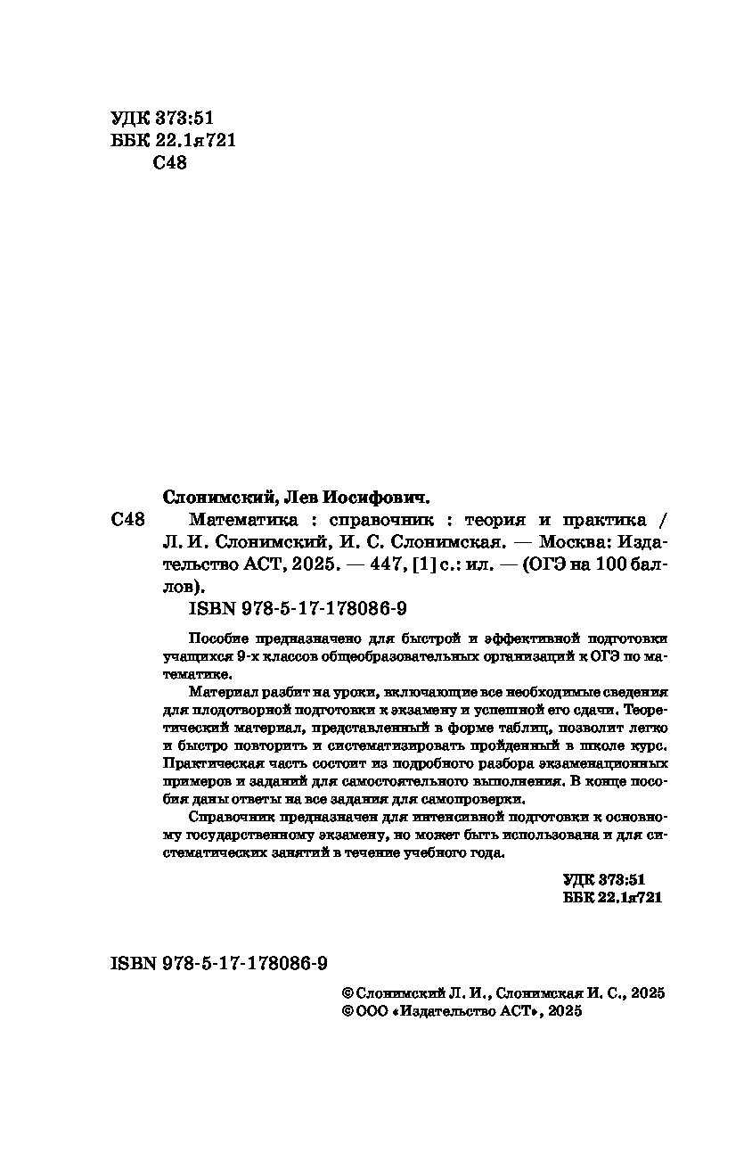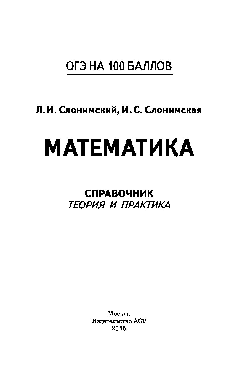 — «ОГЭ. Математика. ОГЭ на 100 баллов. Справочник: Теория и практика» Слонимский Л.И., Слонимская И.С.