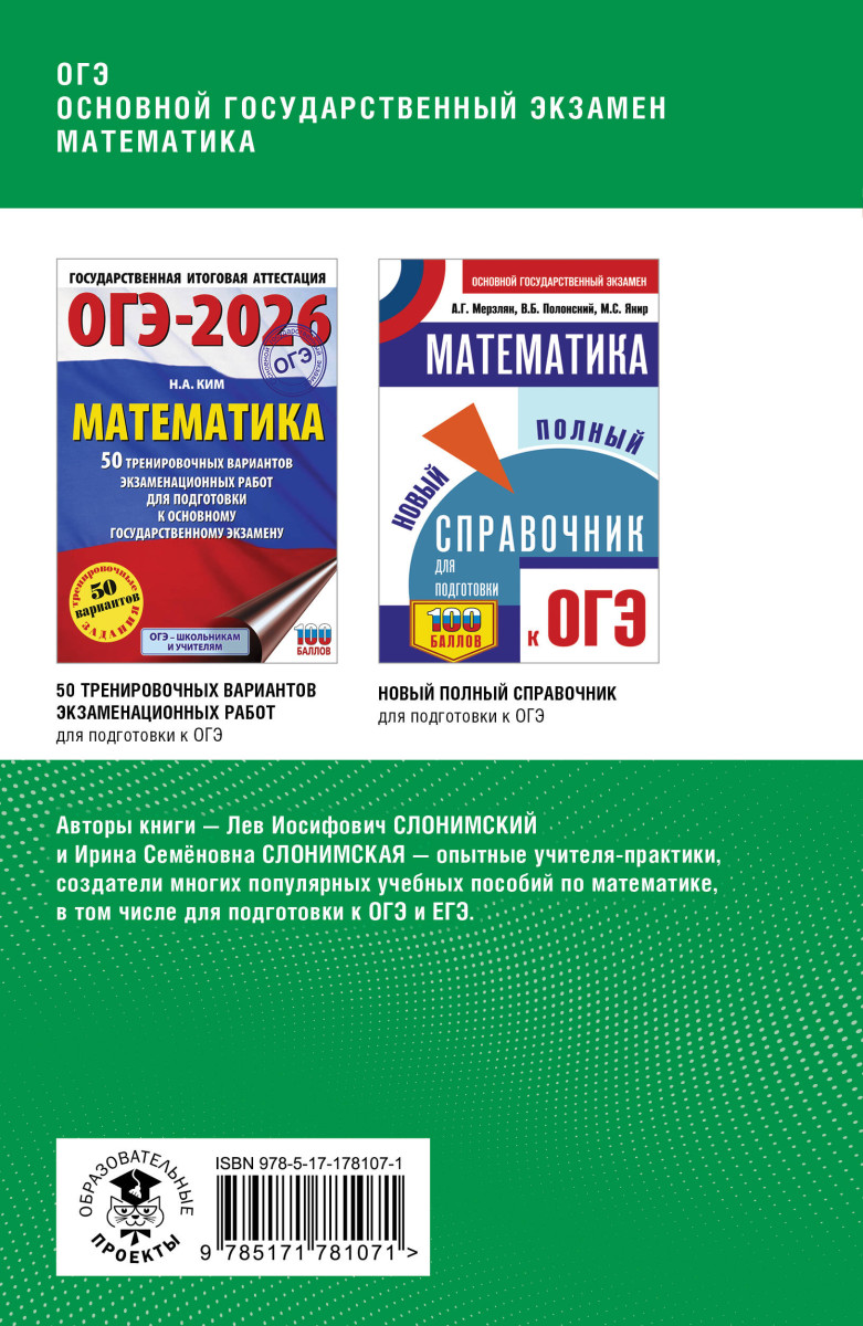 — «ОГЭ. Математика. Полный курс в таблицах и схемах для подготовки к ОГЭ» Слонимский Л.И., Слонимская И.С.