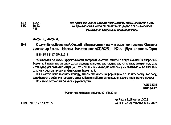 — «Оракул Голос Вселенной. Открой тайные знания и получи все, о чем просишь» Яксон Эльвина и Алесандр