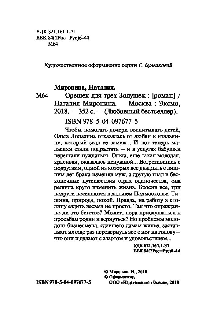 —Книга «Орешек для трёх Золушек» Миронина Н.