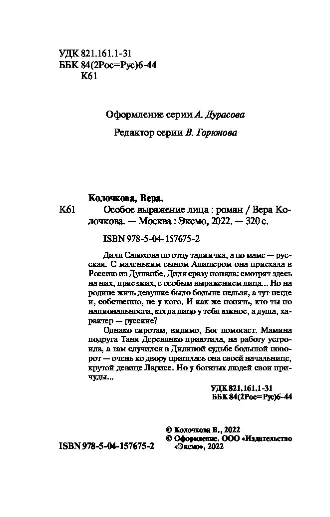 Библиография Веры Колочковой насчитывает более 40 романов, многие из которых уже воплощены на экране. Любовь к автору вполне объяснима, ведь она пишет об обычных людях, которые стремятся к лучшей жизни и борются за собственное счастье. Простые и чувственные, увлекательные и романтичные, романы Колочковой задевают за живое, заставляя сопереживать и радоваться героям как своим знакомым.