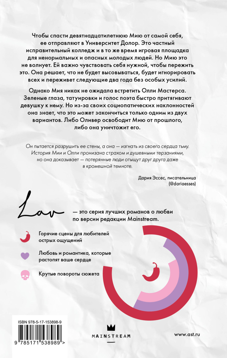 – Горячая и насыщенная эмоциями история с тропами «плохая девочка и хороший мальчик», «запретный роман» и «противоположности притягиваются».