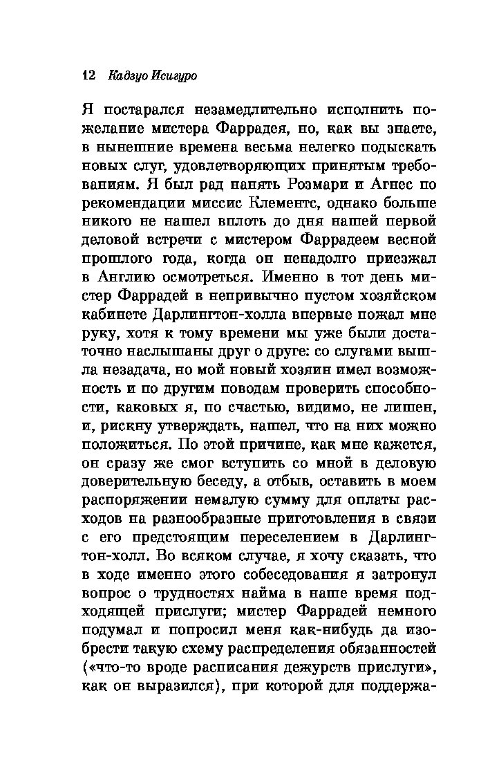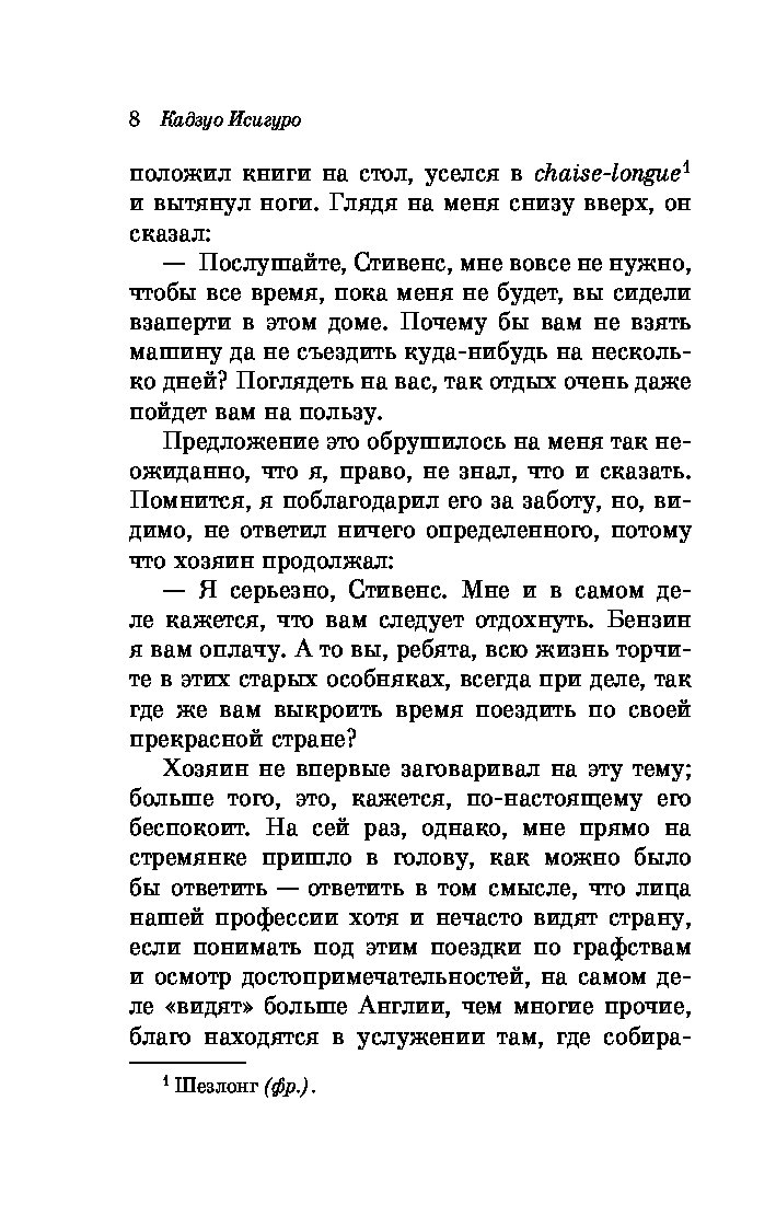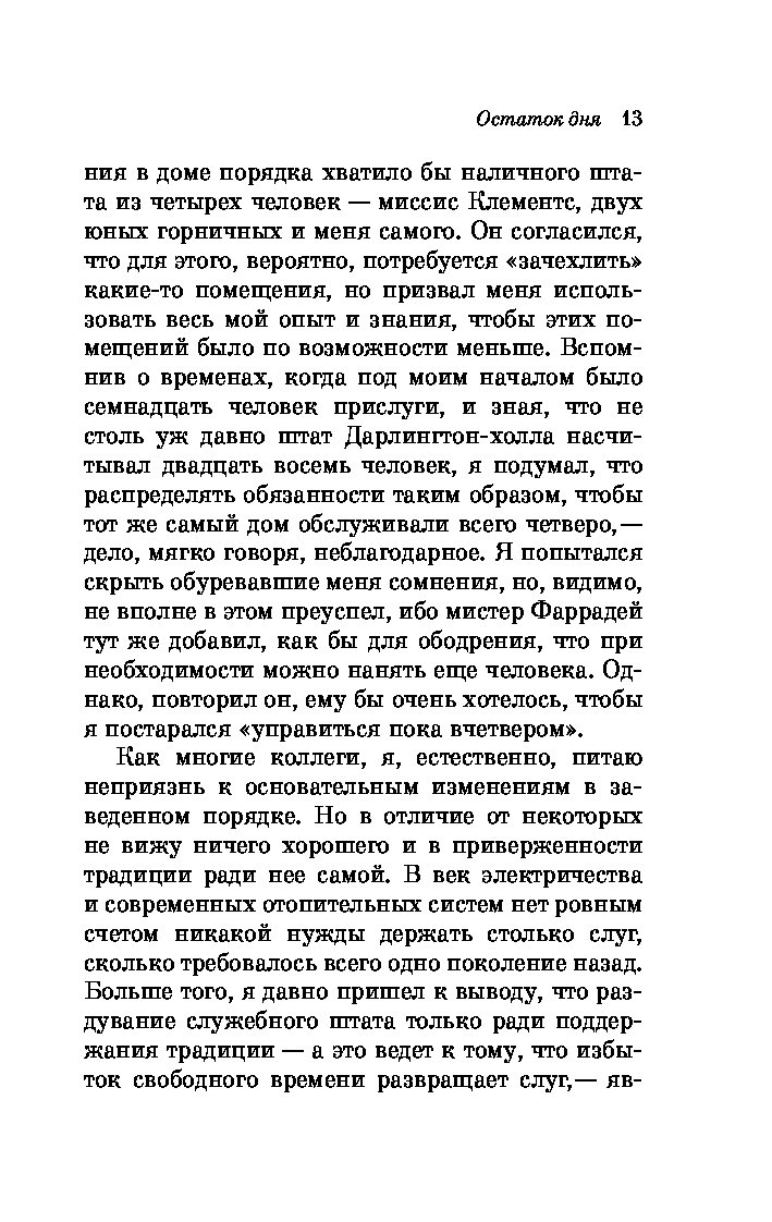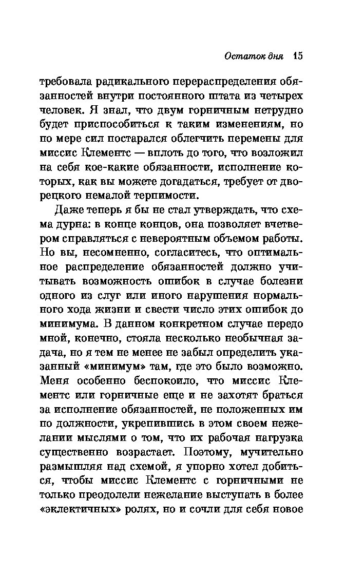 Самый английский роман конца XX века. Дворецкий Стивенс, без страха и упрека служивший лорду Дарлингтону, рассказывает о том, как у него развивалось чувство долга и умение ставить нужных людей на нужное место, демонстрируя поистине самурайскую замкнутость в рамках своего кодекса служения.