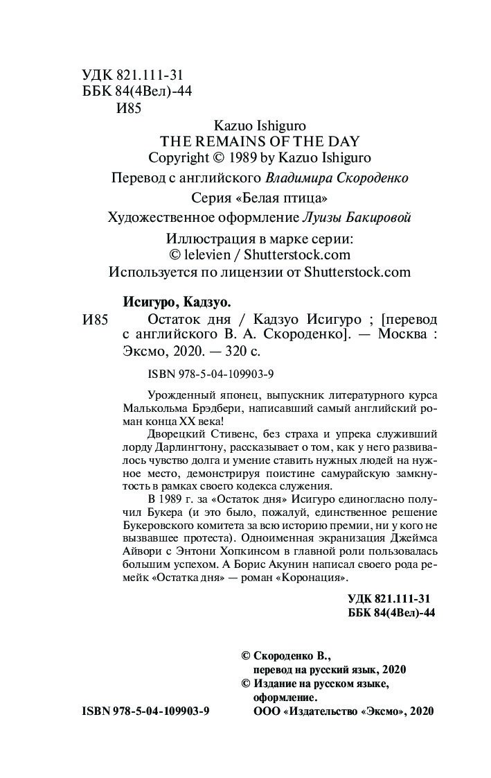 В интернет-магазине Book24.kz можно в считанные минуты заказать книгу Остаток дня в режиме онлайн и получить ее уже через несколько дней. Благодаря нашему сервису, вы очень скоро станете владельцем выбранного издания, ведь мы осуществляем продажу книг по доступным ценам и гарантируем адресную доставку заказов по Казахстану (в Актау, Актобе, Атырау, Караганду, Кокшетау, Костанай, Кызылорду, Павлодар, Петропавловск, Талдыкорган, Тараз, Уральск, Усть-Каменогорск, Шымкент, Алматы, Астану и в другие города). У нас на сайте можно прочитать отзывы покупателей, ознакомиться с кратким содержанием книги, просмотреть фото. Сравнив стоимость интересующей вас книги с ценой в стационарном магазине, вы убедитесь, что у нас лучшие условия продажи.