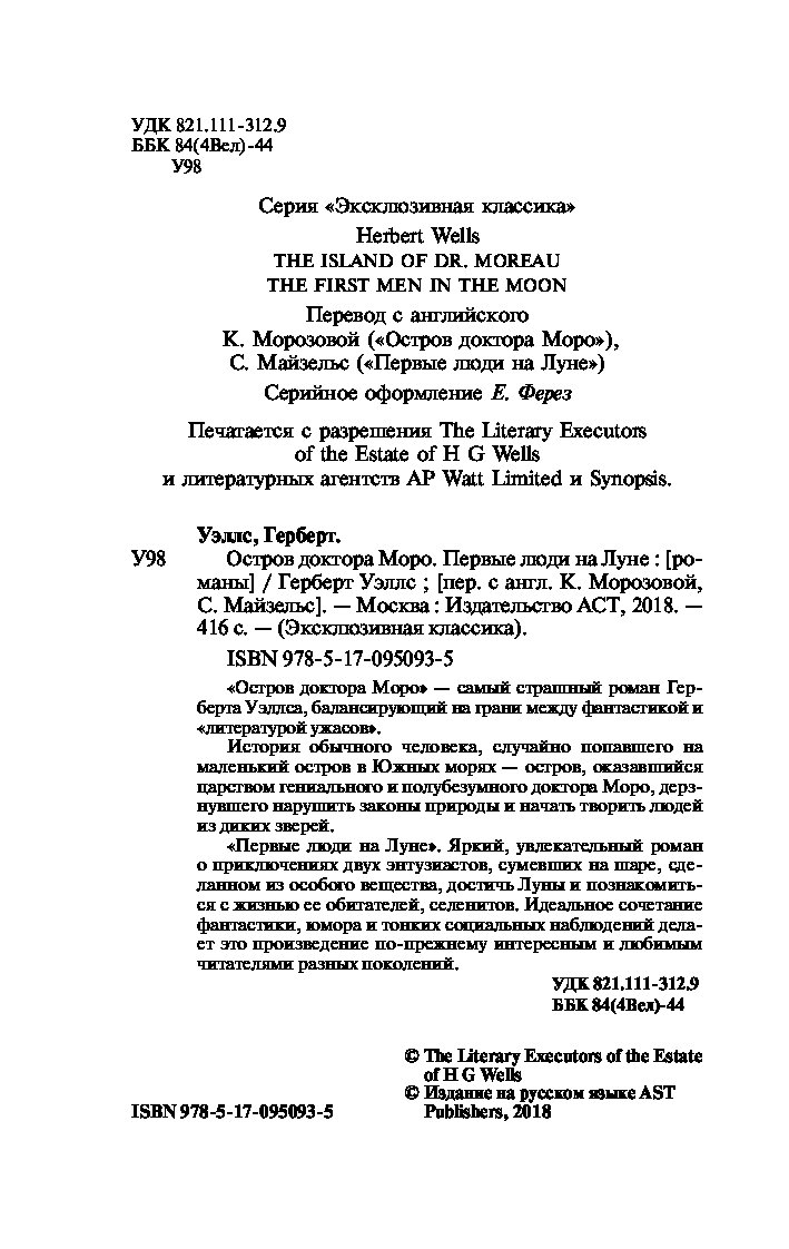 —Книга «Остров доктора Моро. Первые люди на Луне» Уэллс Г.
