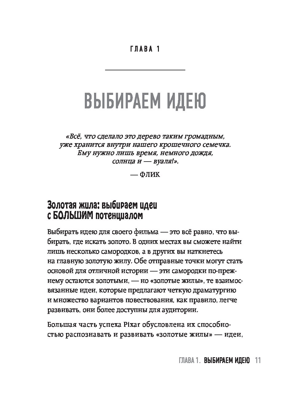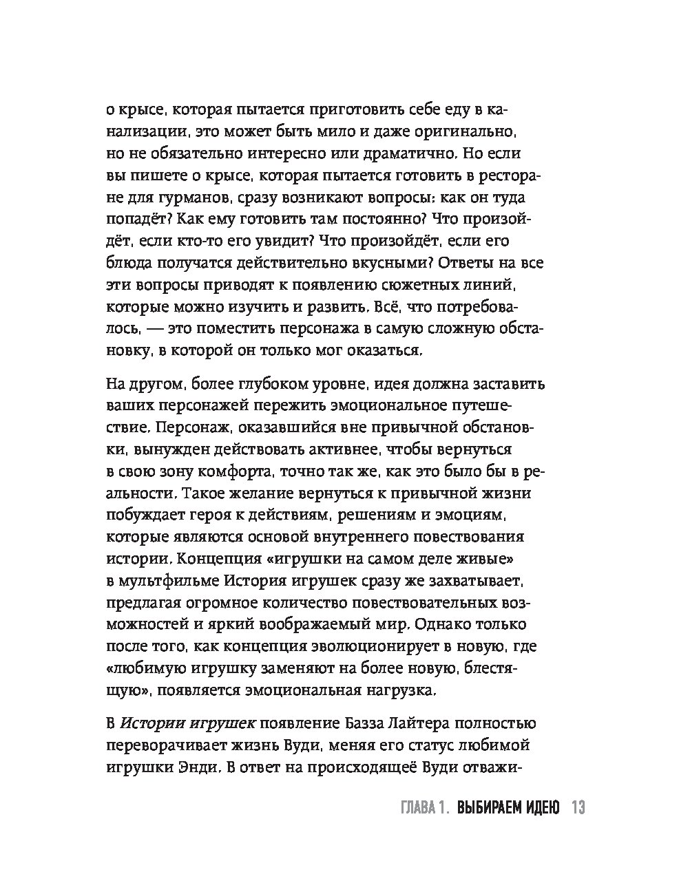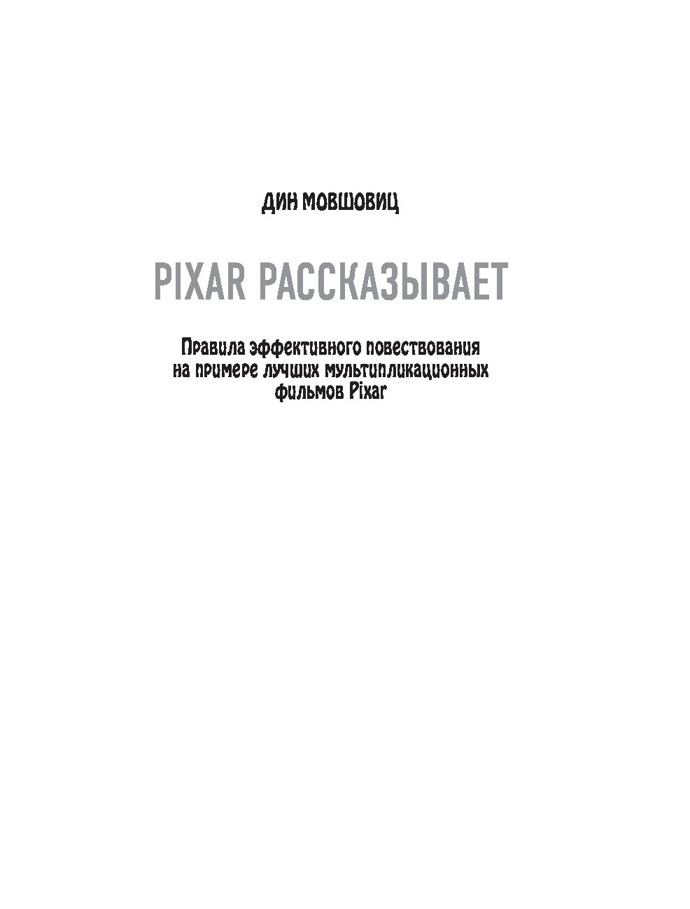 Бестселлер Амазона! 10 глав — 10 советов, каждый из которых аргументируется на основе уже существующих анимационных фильмов компании. Будет интересна начинающим писателям и сценаристам, которые хотят научиться рассказывать истории, а также поклонникам мультфильмов Pixar, которым интересно узнать больше о создании их любимых историй. В обновленном дополненном издании автор книги добавил разбор новинок студии, таких как «История игрушек 4», «Вперед», «Душа», «Базз Лайтер» и «Элементарно»!