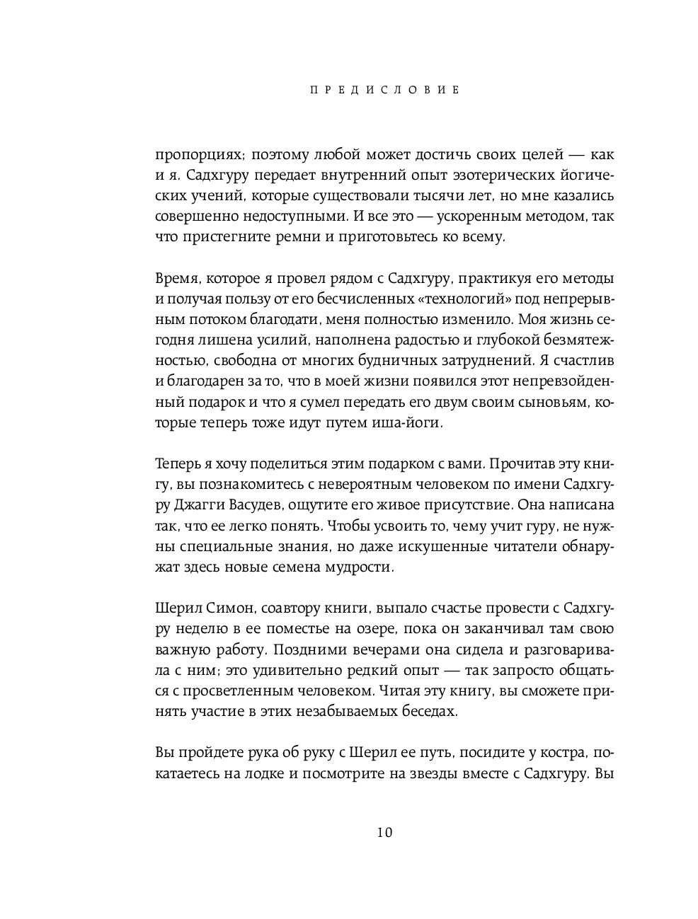В этой книге Садхгуру не только делится мудростью: он также гоняет на машине, играет в гольф, усмиряет злых собак и много шутит.