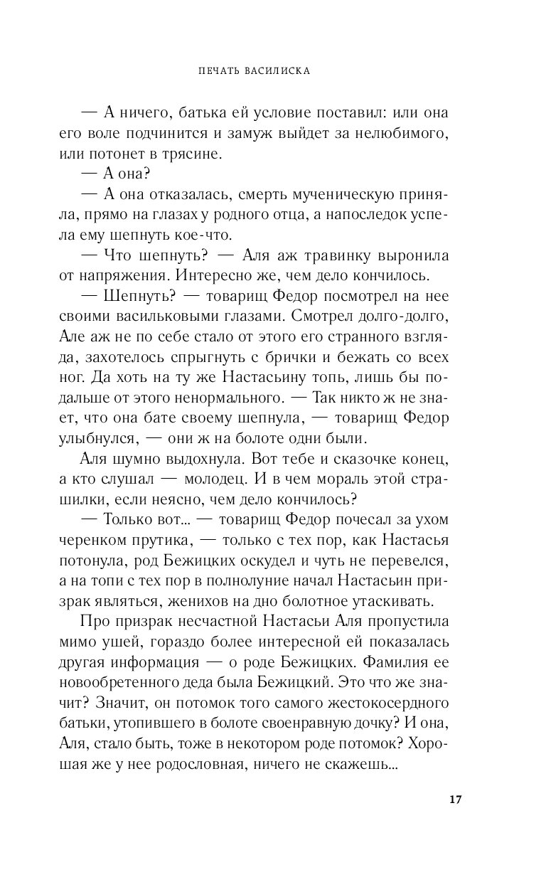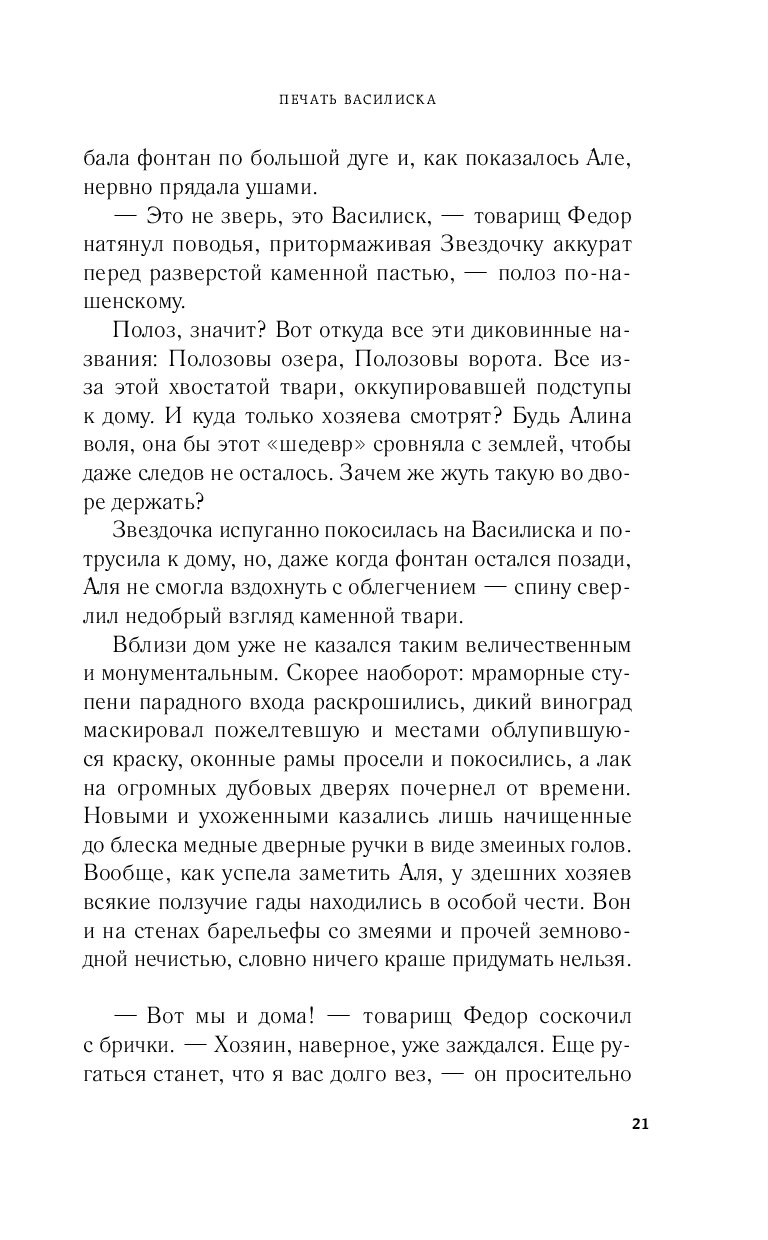 В имение "Полозовы ворота" Алю пригласил родной дед, о существовании которого молодая женщина и не подозревала. Она воспитывалась в детдоме, и поэтому очень обрадовалась появлению родственника. Кстати, чрезвычайно своевременному – ей как раз необходимо спрятаться и затаиться. Однако попав в имение, Аля понимает: что-то здесь не чисто. В этих краях существует легенда о пробуждении Василиска, который явится затем, чтобы забрать причитающееся ему. Неужели дед пригласил к себе внучку с какой-то тайной целью?..