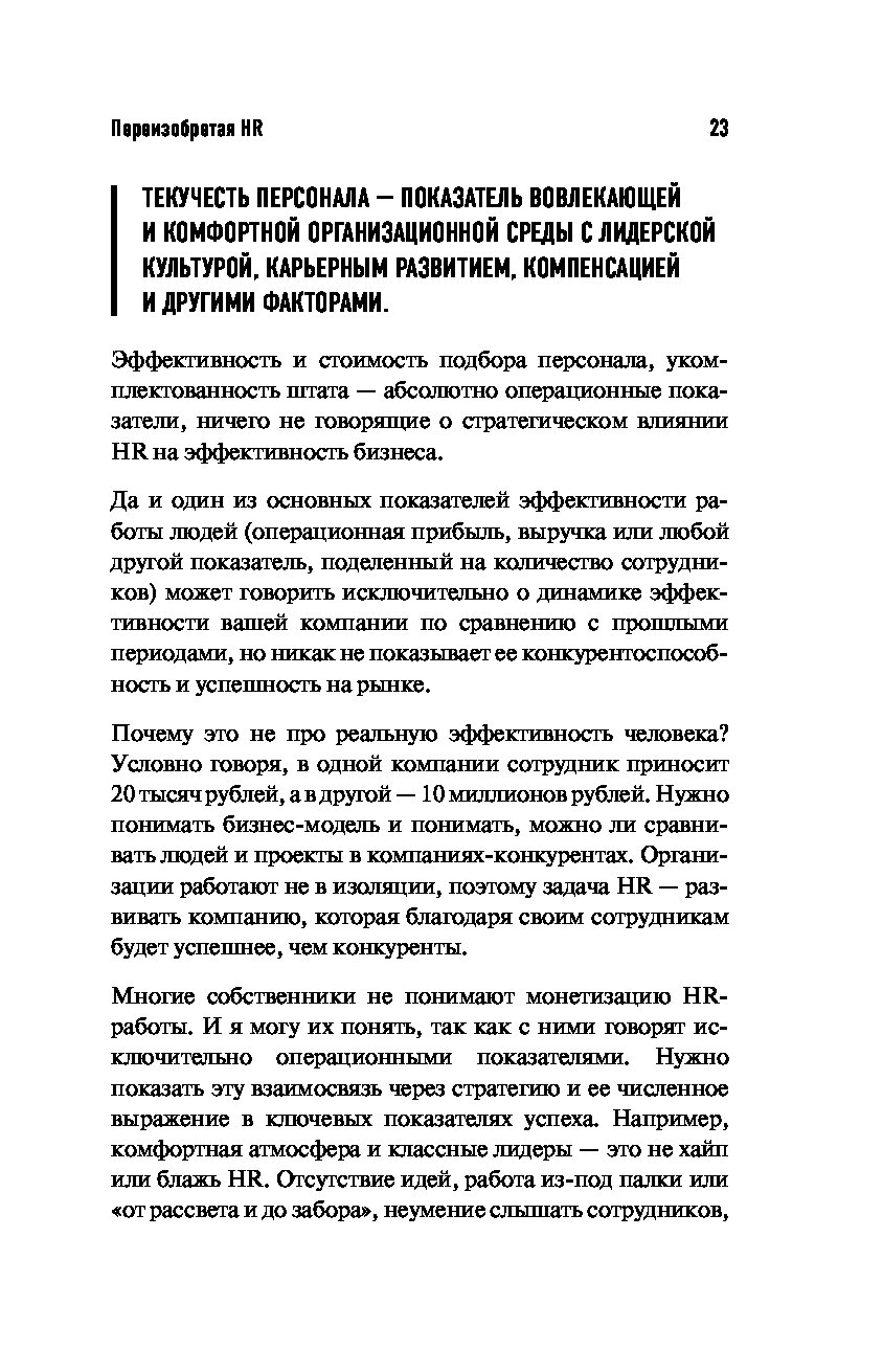 Автор делится собственной методикой и предлагает читателю вместе с ней отправиться в увлекательное путешествие по миру HR. Использовав авторский подход, вы сможете не только улучшить бизнес-процессы компании, но и найти наиболее подходящую для вас стратегию.