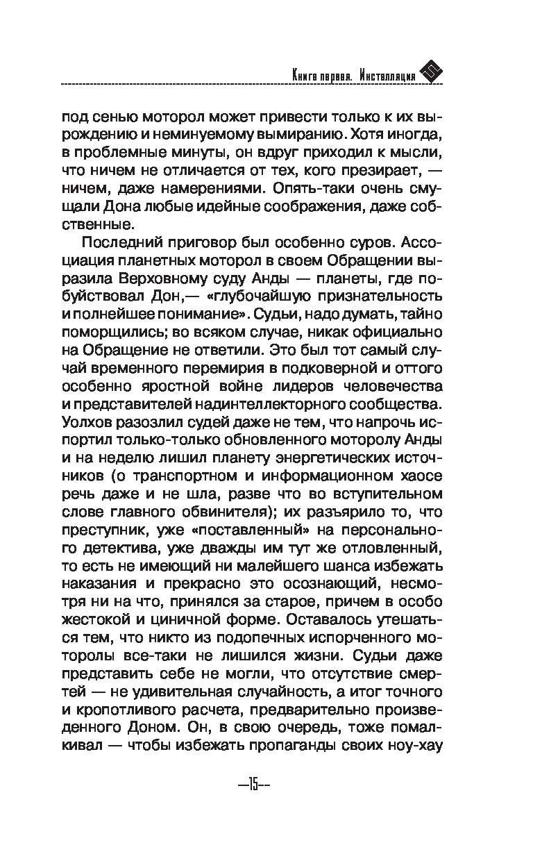 В будущем всеми процессами жизнеобеспечения человечества занимается искусственный интеллект, наделенный сознанием, — моторола. Его цель — контролировать каждый шаг людей, дабы получить абсолютную власть. Однако на пути моторолы встает Доницетти Уолхов, или Дон, посвятивший жизнь сопротивлению, а по стопам того идет персональный детектив Кублах, в мозг которого имплантировано устройство, способное подчинить преступника своей воле. Чтобы избежать преследования, Дон соглашается на Инсталляцию — наделяет своими воспоминаниями всех жителей планеты Париж-100. Однако как у инициатора Инсталляции, безумного ученого Фальцетти, так и у моторолы есть свои планы на Доницетти и получившиеся копии — донов.