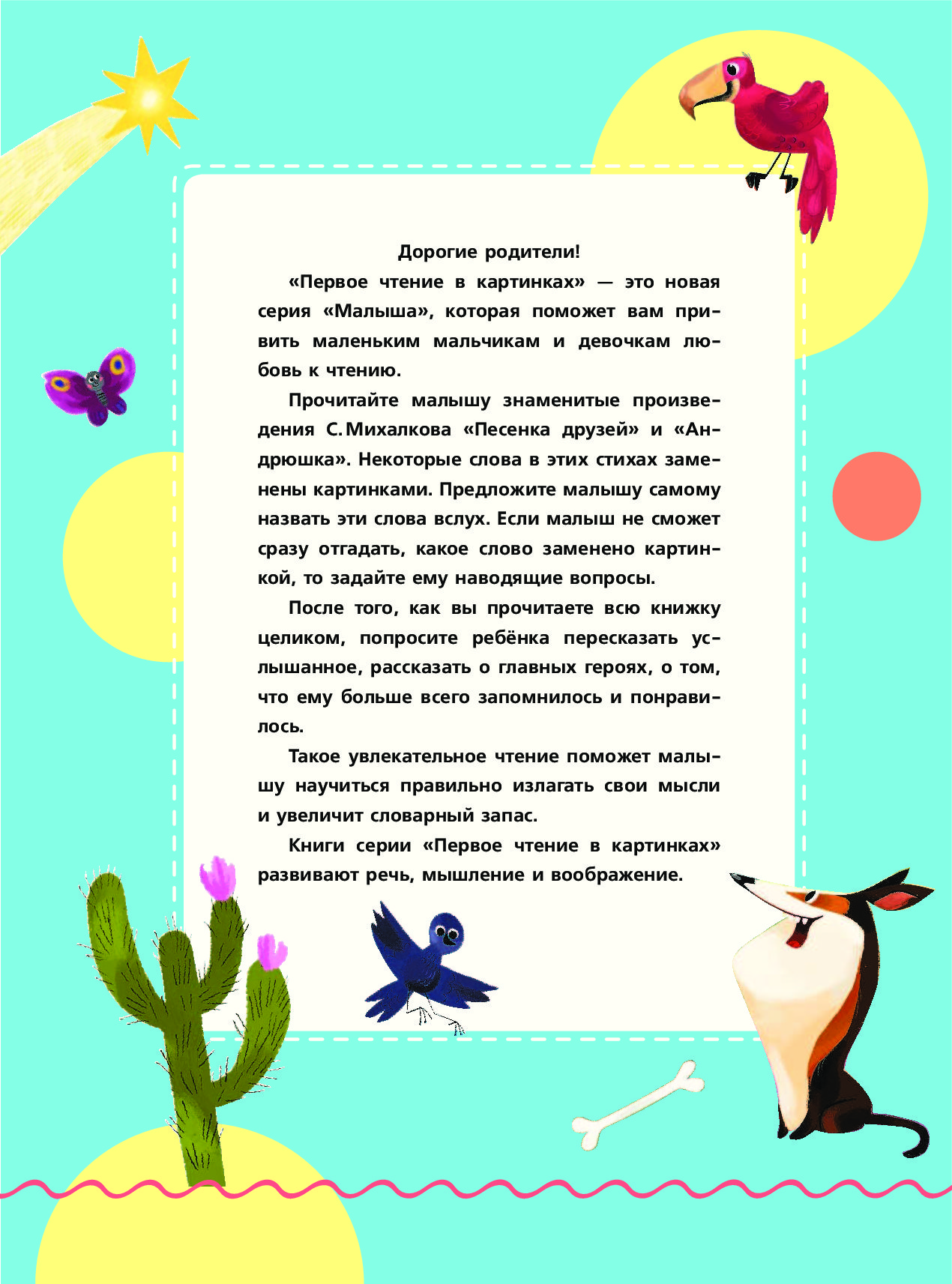 «Первое чтение в картинках» – это новая серия «Малыша», которая поможет родителям приучить маленьких мальчиков и девочек к чтению. Родители читают малышу произведения классиков детской литературы, где некоторые слова заменены картинками, а малыш называет сам это слово вслух. Эта увлекательная игра увеличивает словарный запас, развивает речь, мышление и воображение.