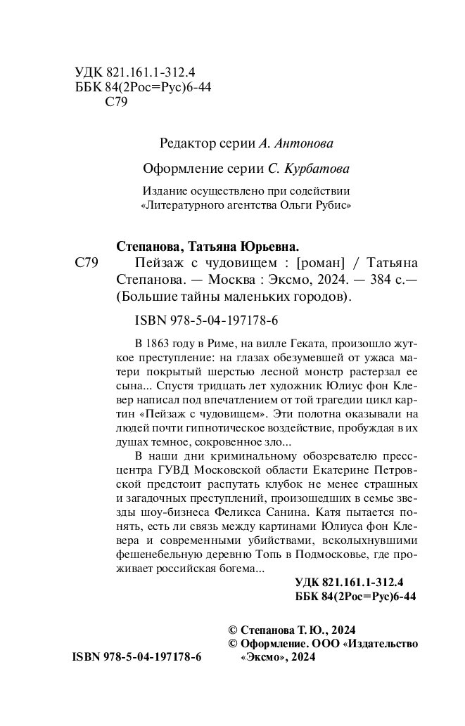 Достоверность, психологизм и напряжение — три главных принципа, на которых строит свои детективы подполковник полиции Татьяна Степанова. Преступник хитер и неуловим, одна версия сменяет другую, эмоции — на пределе. А разгадка — всегда неожиданна. Романы Татьяны Степановой пугают и завораживают, интригуют и очаровывают. Неповторимый сюжет, эксклюзивный материал и глубокий психологизм неожиданно и органично переплетаются с элементами мистики и триллера.