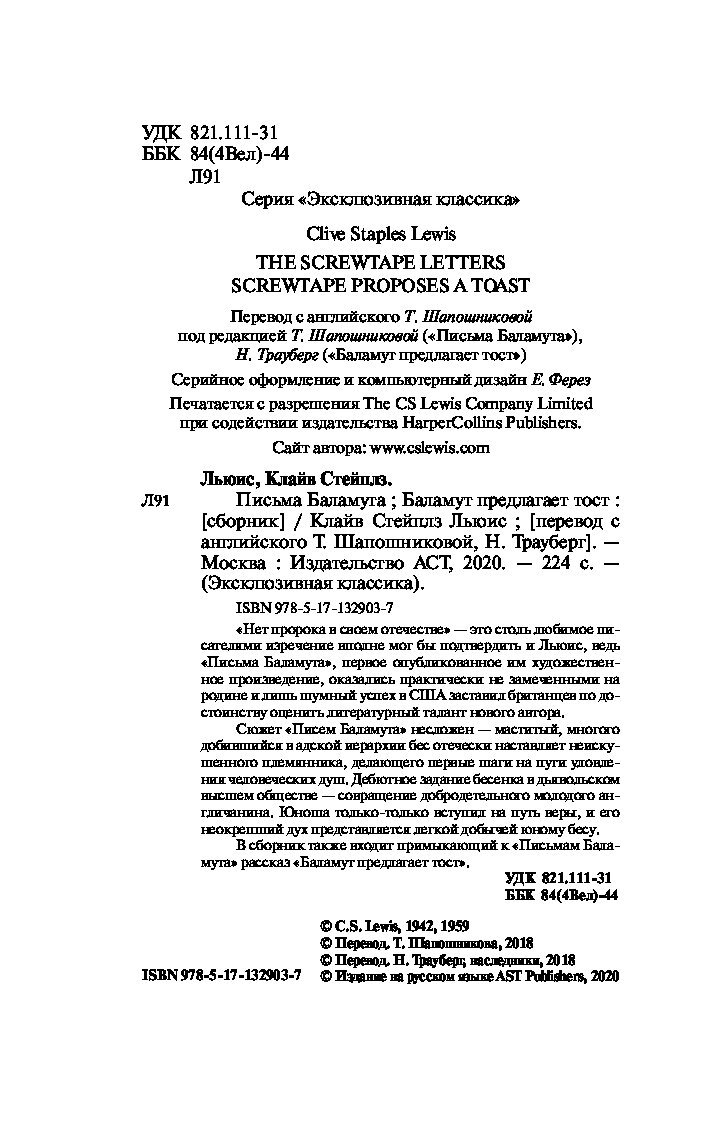 —Книга «Письма Баламута. Баламут предлагает тост» Льюис К.