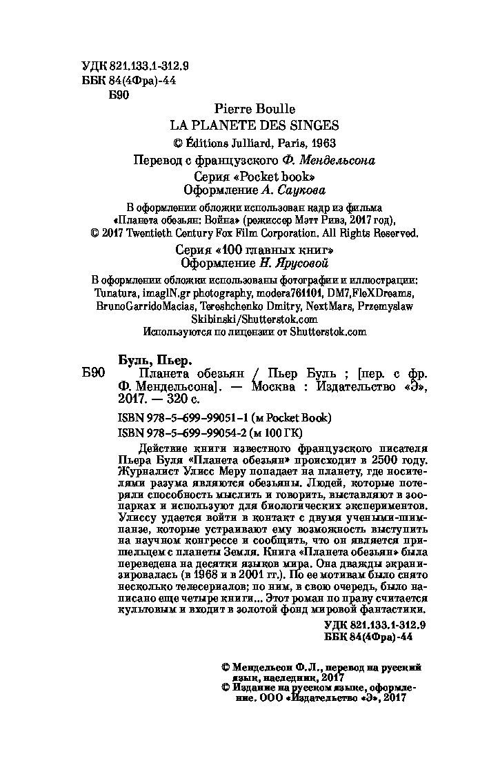 —Книга «Планета обезьян» Буль П.