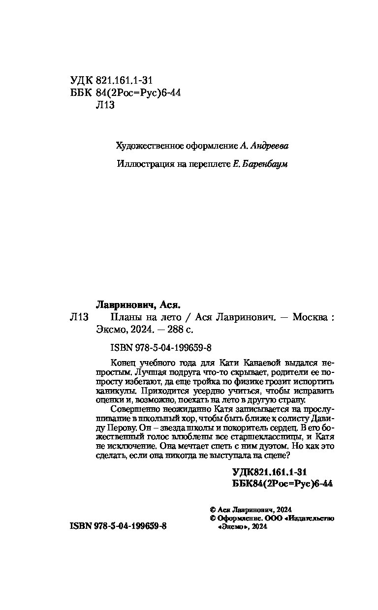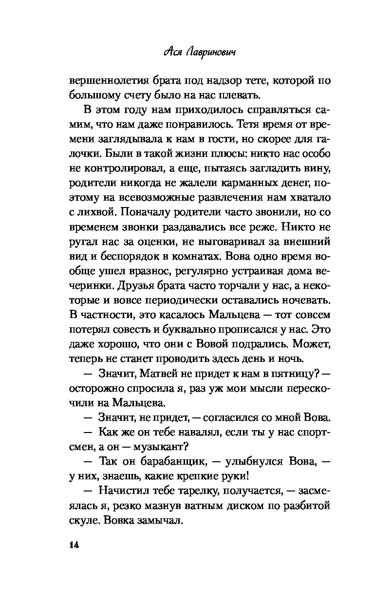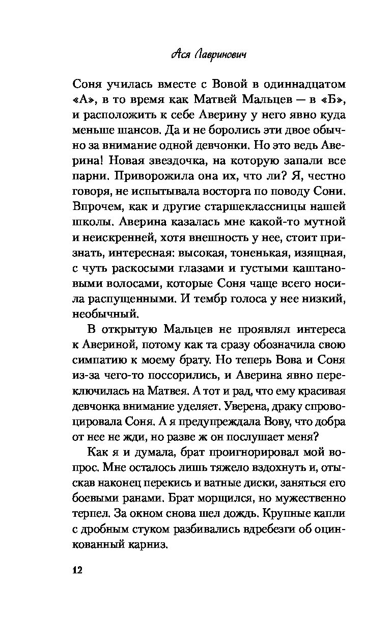 Ася Лавринович — один из самых популярных авторов российского янг эдалта в жанре современной сентиментальной прозы. Суммарный тираж ее проданных книг составляет более 700 000 экземпляров. Победитель премии «Выбор читателей 2023» на Livelib в номинации «Young adult. Лучшая книга о подростках и для подростков». На две книги Аси — «Загадай любовь» и «Нелюбовь сероглазого короля» — куплены права на экранизацию. А сериал по «Загадай любовь» уже можно посмотреть в онлайн-кинотеатре Okko.