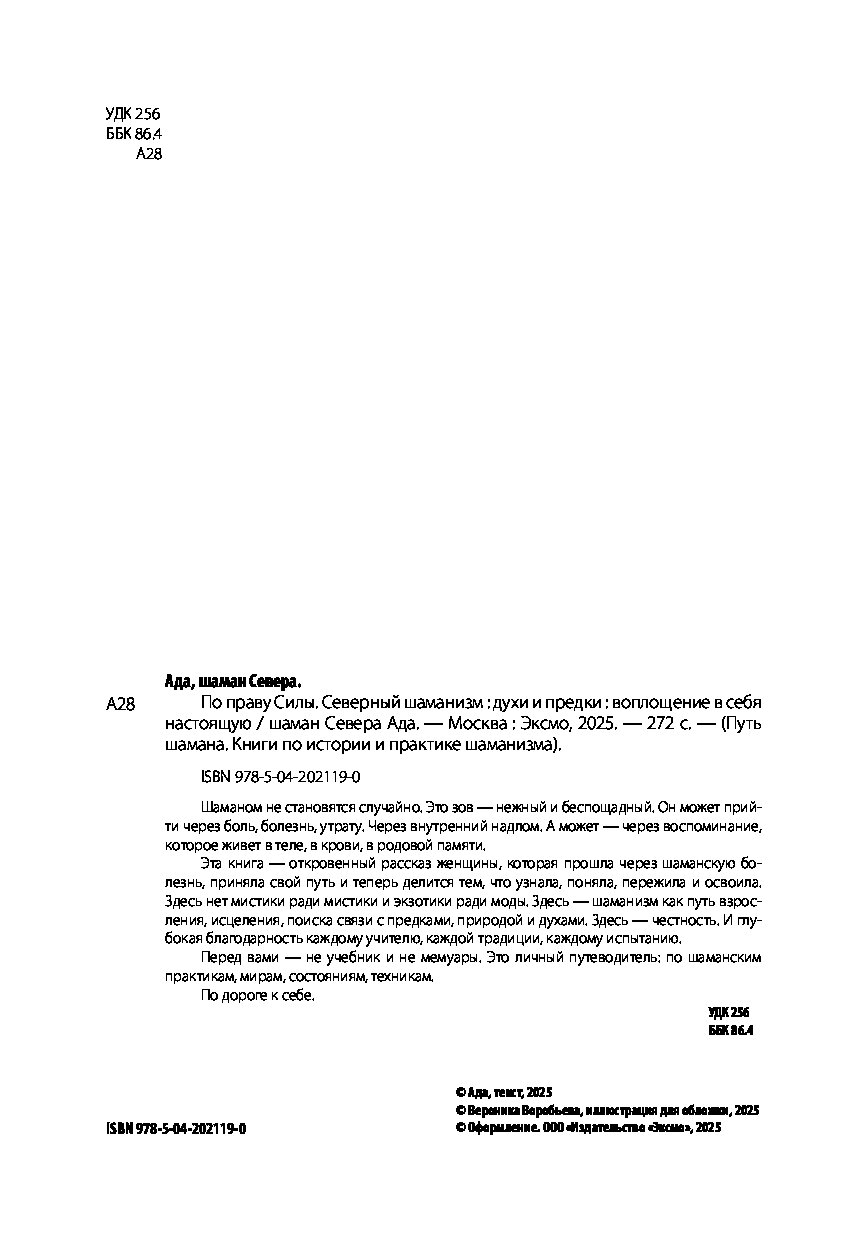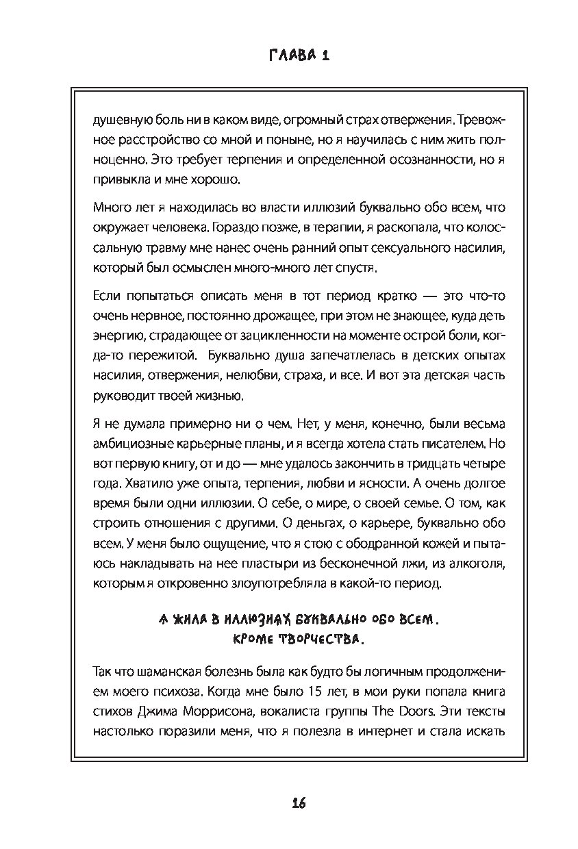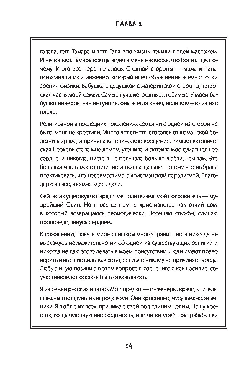 Эта книга подходит как для новичков в шаманизме, так и для тех, кто уже идёт этим путём и хочет углубить свои знания и практики. Откровенный стиль изложения позволит вам почувствовать поддержку и вдохновение, стать ближе к себе настоящему и своему истинному предназначению. Позвольте себе прикоснуться к мистерии, где со временем открываются все секреты вашего «я». Кроме того, автор также идёт путём Одина, путём Северной традиции, что делает это путешествие ещё более глубинным и многогранным.