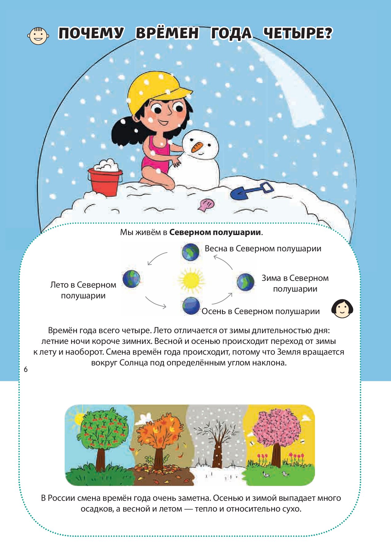 Почему времён года четыре? Куда пропадают птицы зимой? Почему гремит гром? На эти и многие другие вопросы о временах года ответит эта книга, с которой обычное чтение превращается в увлекательную игру. Прочитайте вопрос, рассмотрите картинку, откройте большой клапан и познакомьтесь с ответом!
