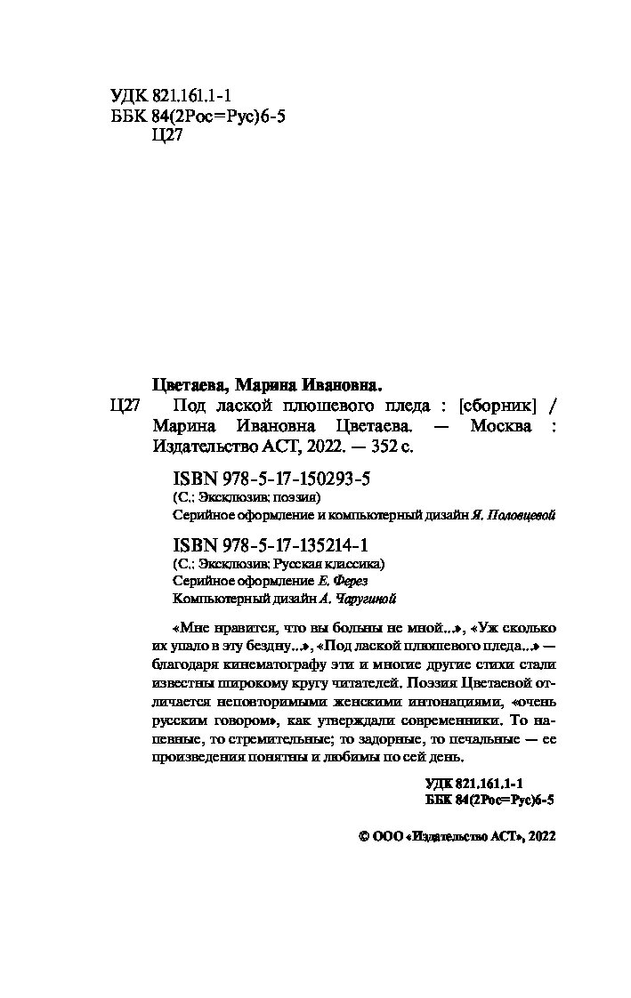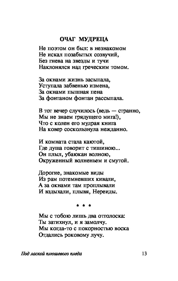 «Под лаской плюшевого пледа» Цветаева М.И.
