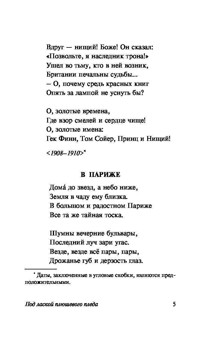 — «Под лаской плюшевого пледа» Цветаева М.И.