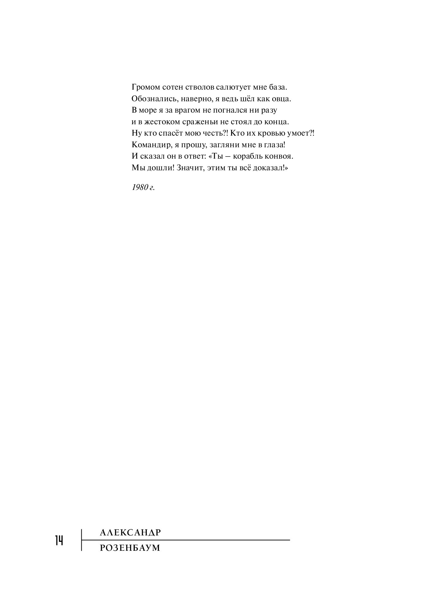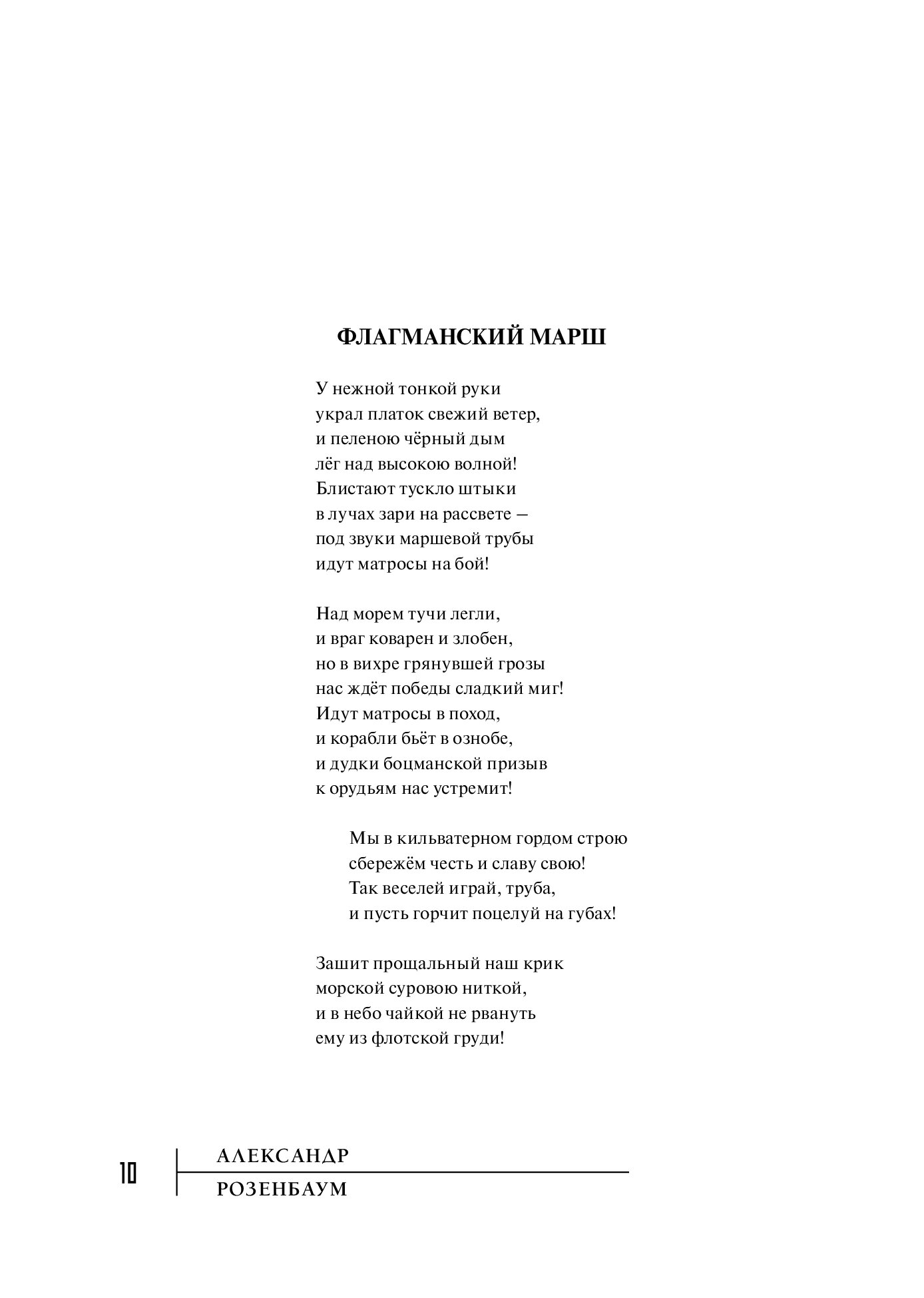 Ленинградец Александр Розенбаум — плоть от плоти поэт и певец своего Великого города, морской столицы России. Именно с его знаменитых песен, посвящённых морякам, их бесстрашию и дальним походам, начинается данное издание.