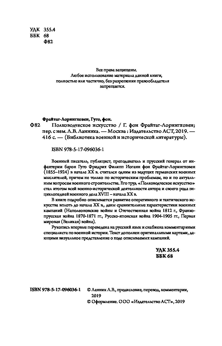 —Книга «Полководческое искусство» Фрайтаг-Лорингховен Г.