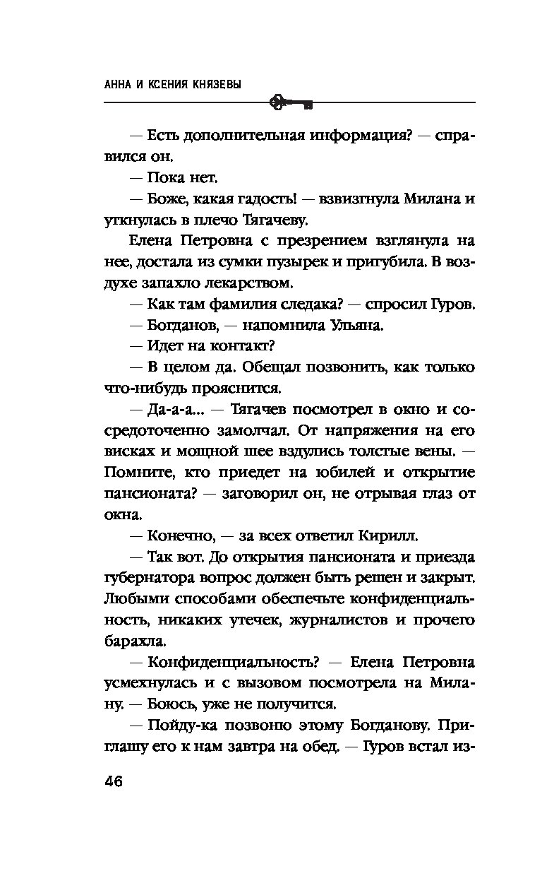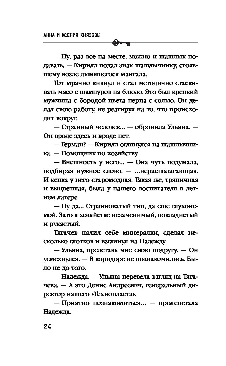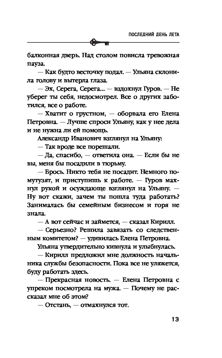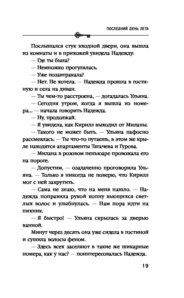«Совместная работа над романом "Последний день лета" началась с обсуждения сюжета и характеристик главных героев. Такая практика у нас существовала и раньше, но равноправное соавторство сложилось только при написании этой книги. Мы надеемся, что наше сотрудничество будет продолжаться и привнесет свежий взгляд на жанр классического детектива». — Анна и Ксения Князевы