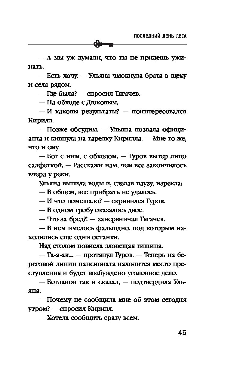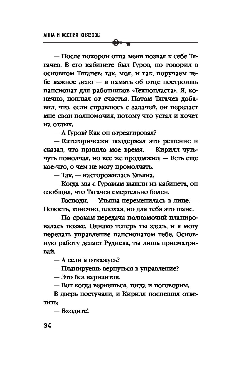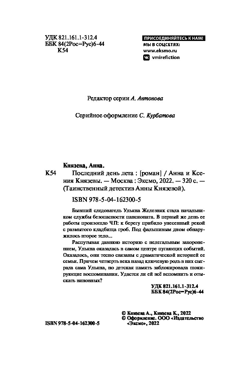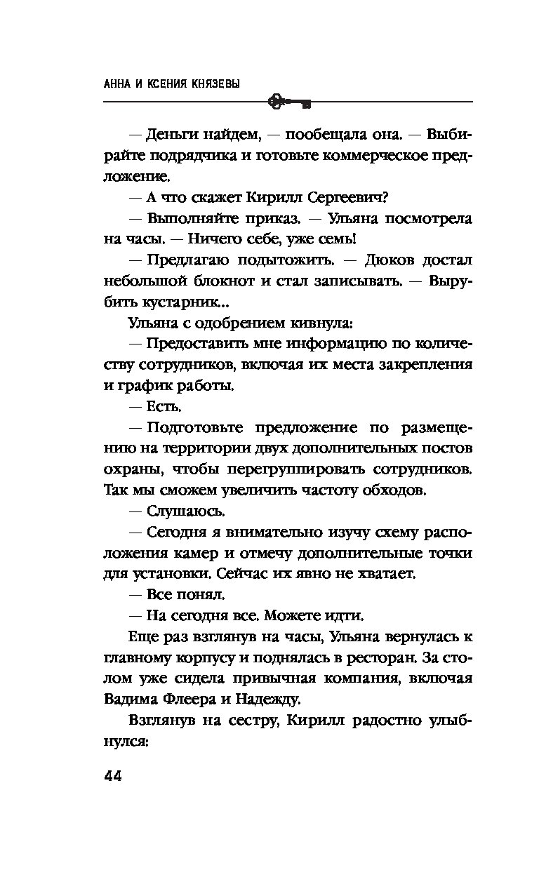 «Совместная работа над романом "Последний день лета" началась с обсуждения сюжета и характеристик главных героев. Такая практика у нас существовала и раньше, но равноправное соавторство сложилось только при написании этой книги. Мы надеемся, что наше сотрудничество будет продолжаться и привнесет свежий взгляд на жанр классического детектива». — Анна и Ксения Князевы