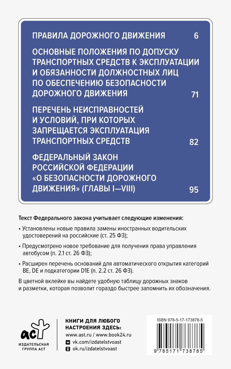 — «Правила дорожного движения и Федеральный закон "О безопасности дорожного движения" на 1 апреля 2025 года. С наглядной таблицей дорожных знаков и разметки» .