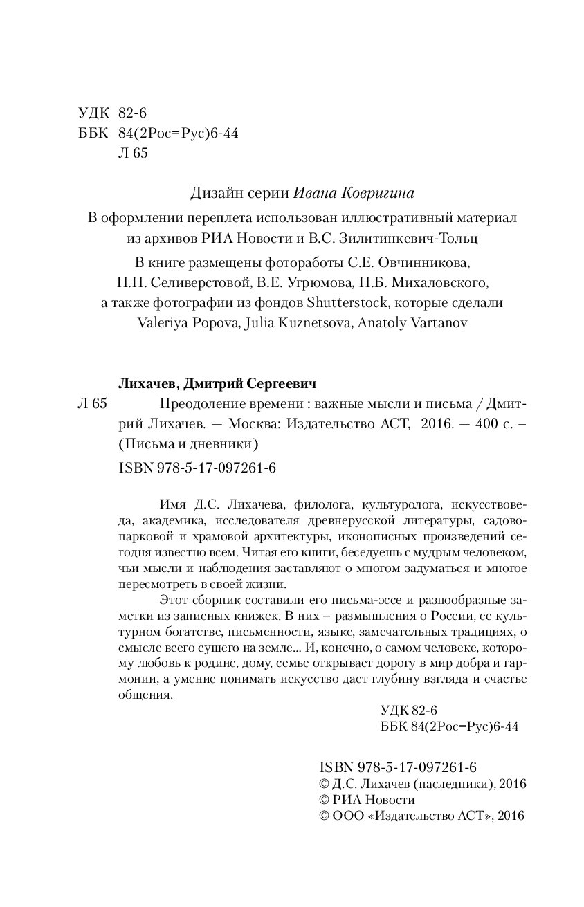 —Книга «Преодоление времени. Важные мысли и письма» Лихачев Д.С.
