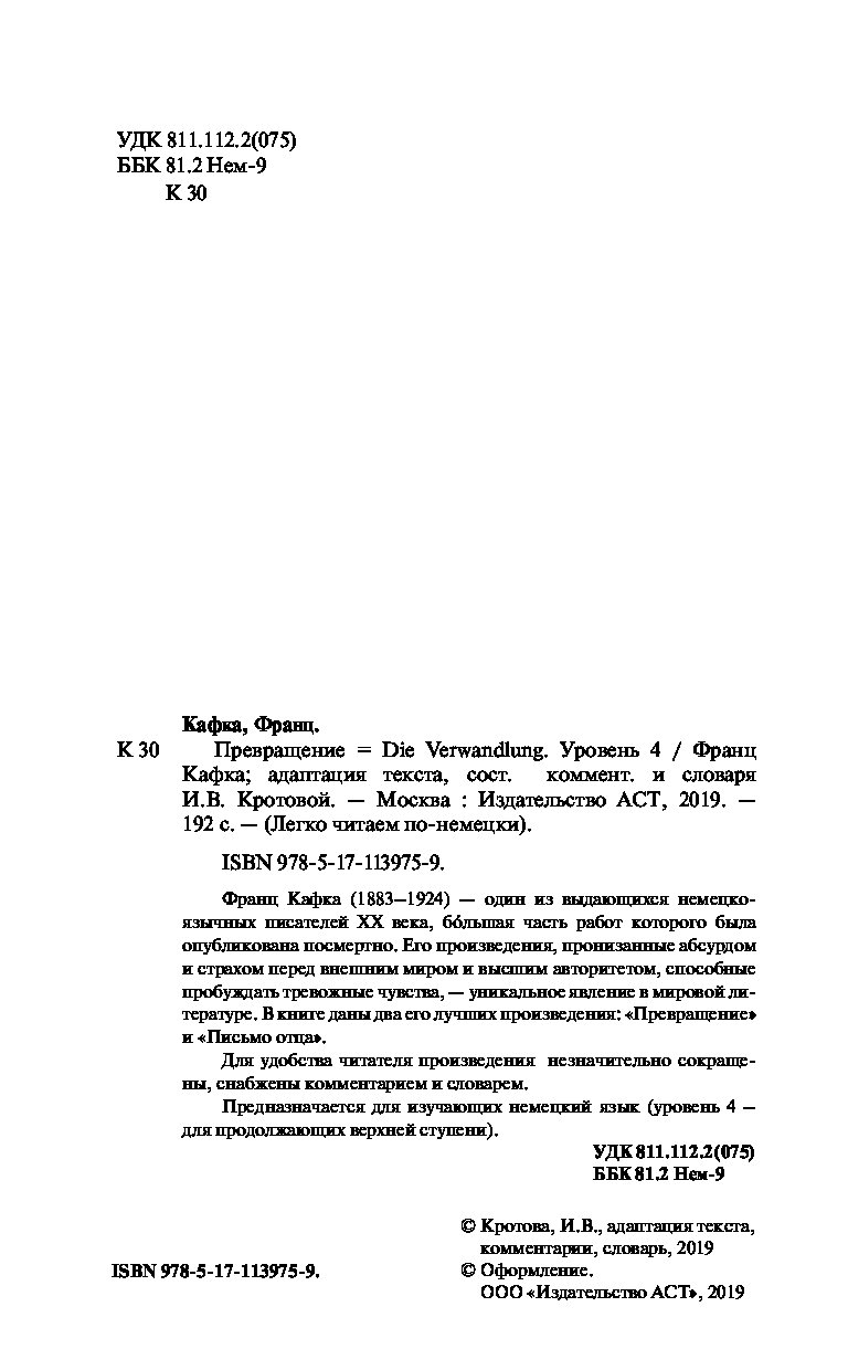 —Книга «Превращение. Уровень 4» Кафка Ф.