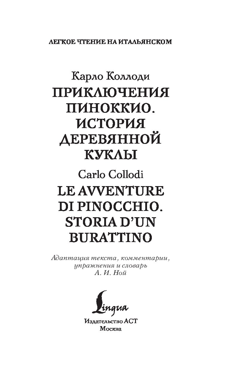 — «Приключения Пиноккио. История деревянной куклы. Уровень 1 = Le avventure di Pinocchio. Storia d'un burattino» Коллоди К.