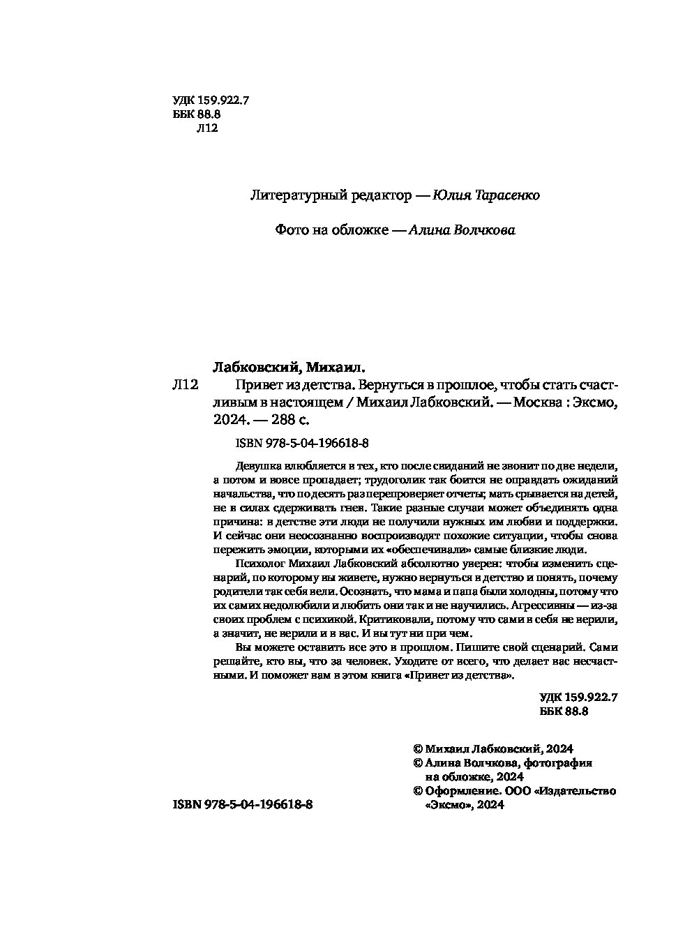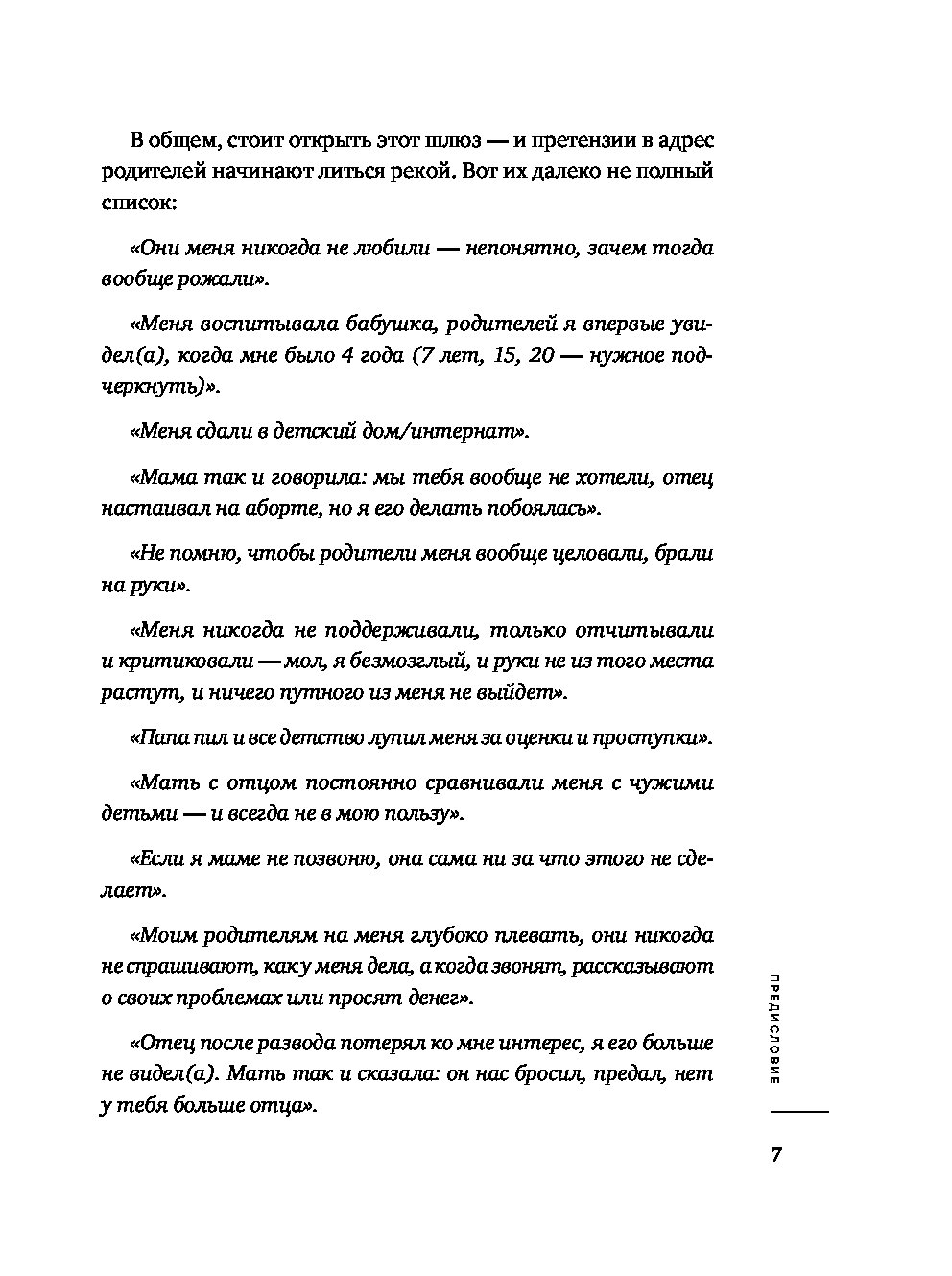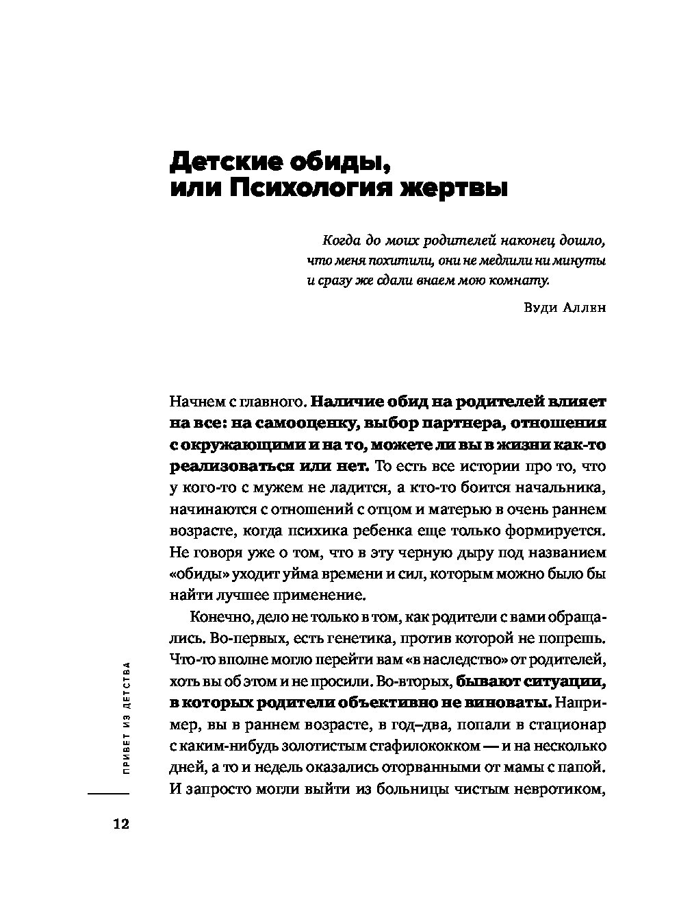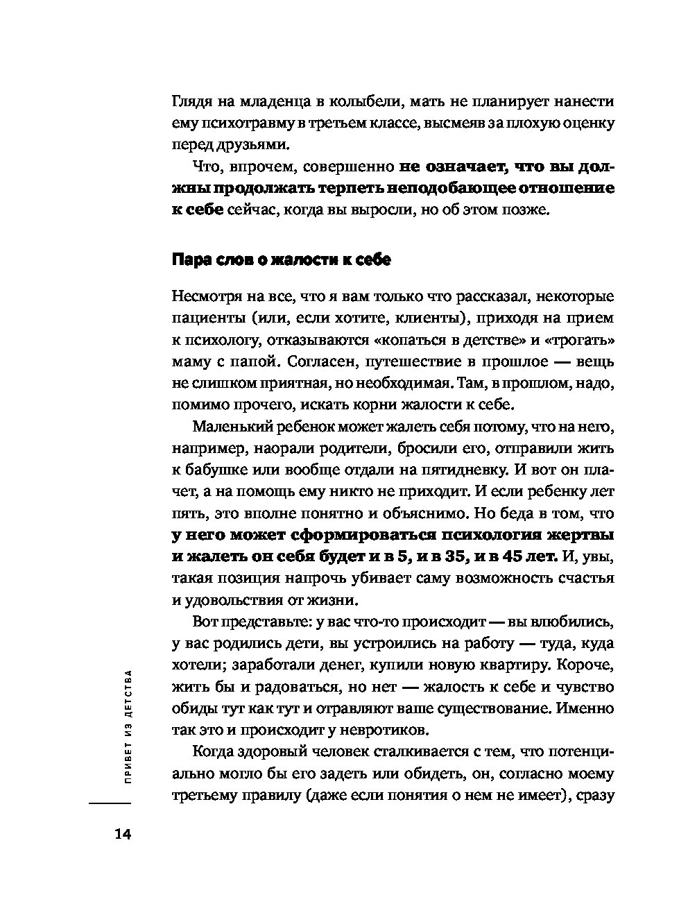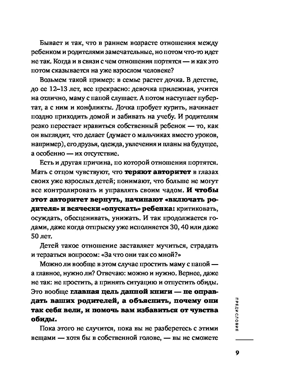 Автор книги уверен: нанесенные в детстве психологические травмы — как неправильно сросшаяся кость после перелома: идти можно, но медленно и превозмогая боль. Чтобы кость срослась правильно, придется вернуться в прошлое, к ситуациям, которые причинили боль, и понять, почему родители так себя вели. И если не получается простить, то хотя бы принять то, что с вами произошло. Ради самих себя, чтобы сбросить груз обид и комплексов, которые мешают расправить плечи и жить смело, легко, а главное — счастливо.
