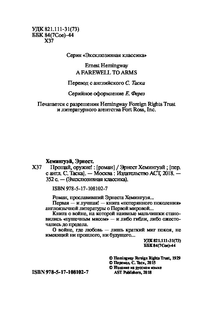 —Книга «Прощай, оружие!» Хемингуэй Э.