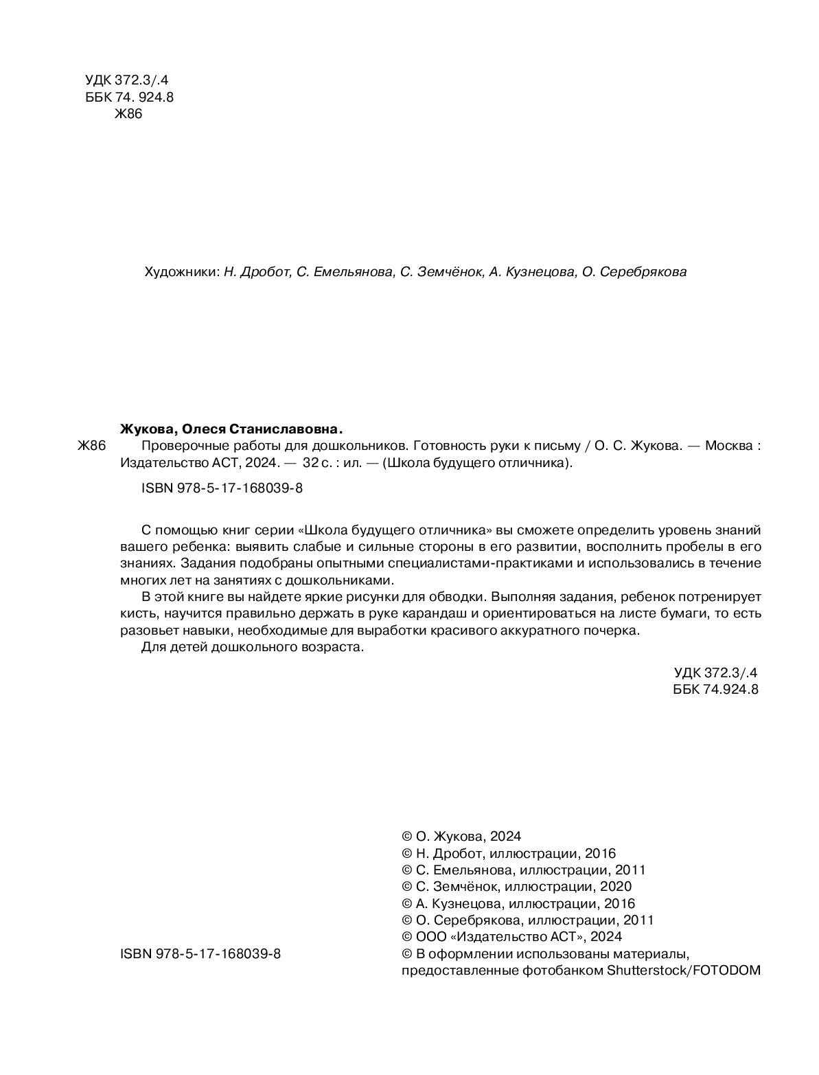 — «Проверочные работы для дошкольников. Готовность руки к письму» Жукова О.С.
