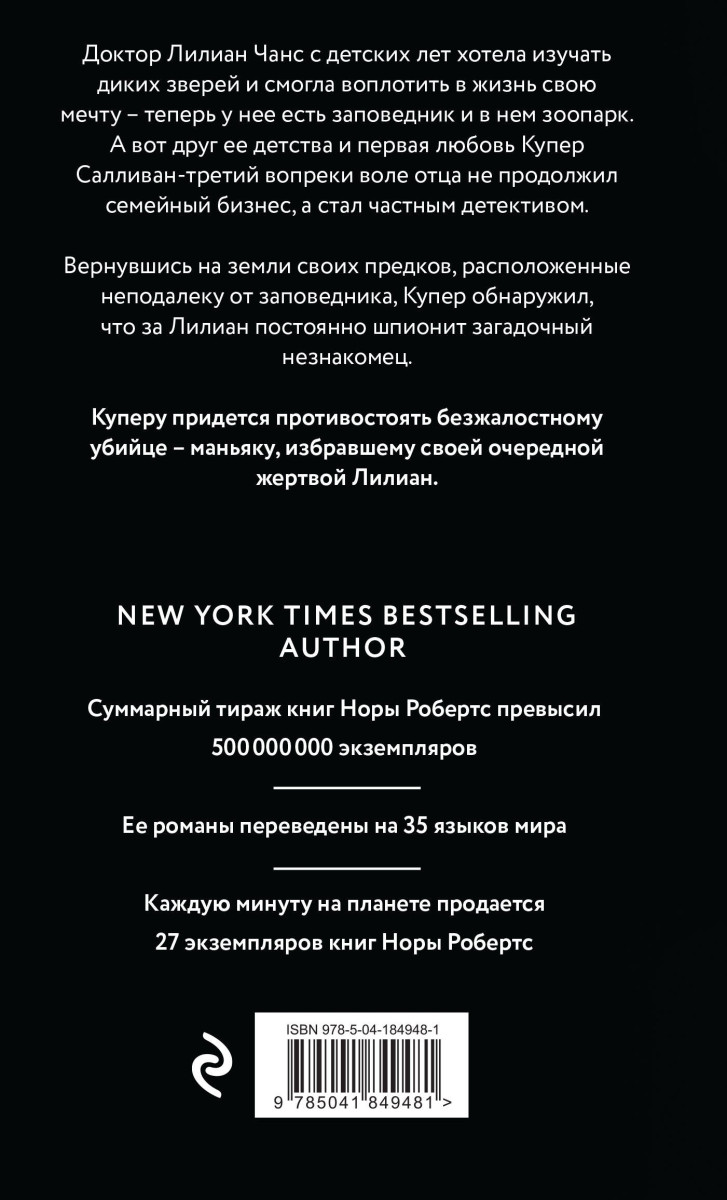 Суммарный тираж книг Норы Робертс превысил 500 млн экземпляров. Ее романы переведены на 35 языков мира. Каждую минуту на планете продается 27 экземпляров книг Норы Робертс.