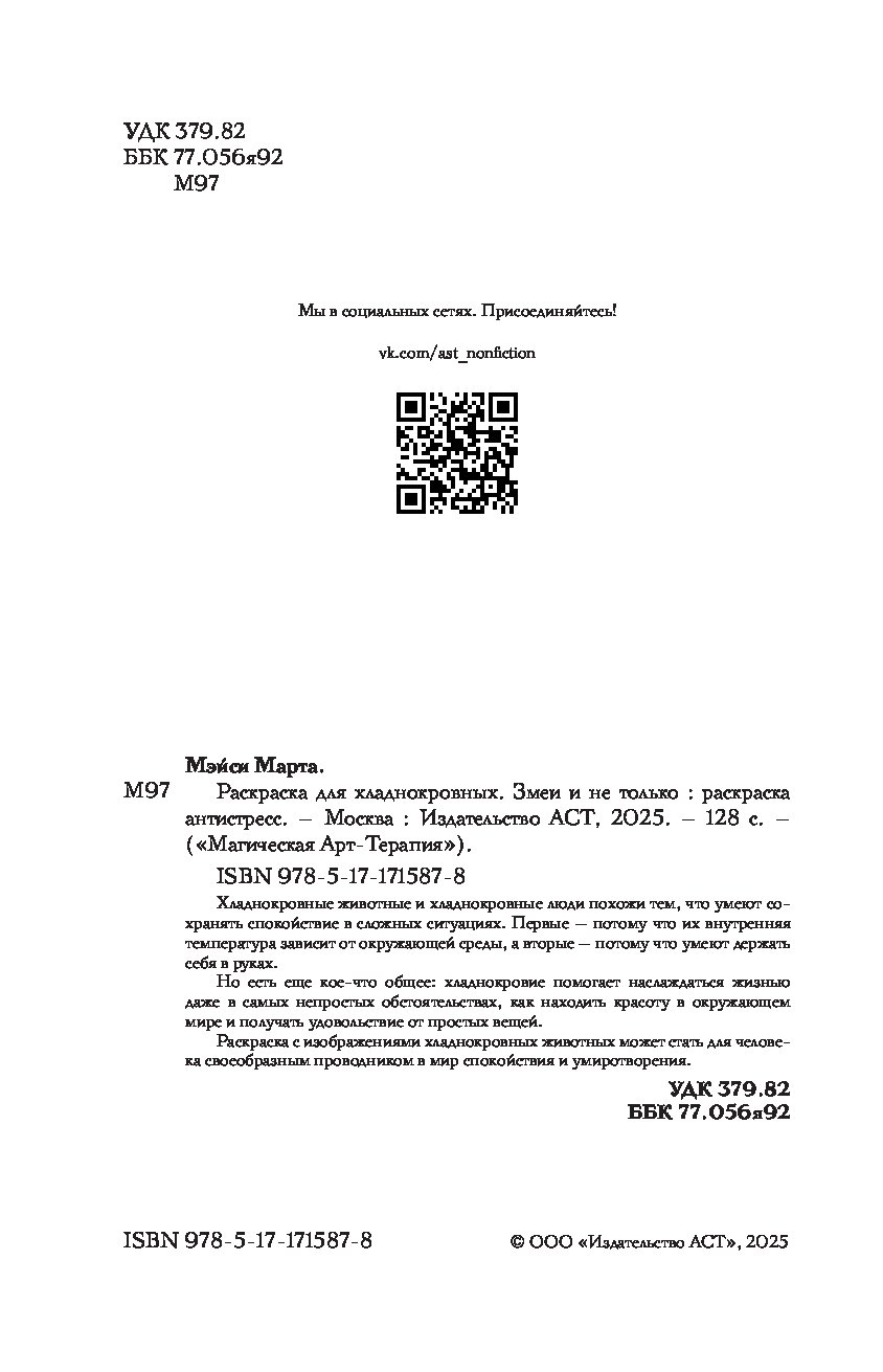 «Раскраска для хладнокровных. Змеи и не только. Раскраски антистресс» Мэйси М.