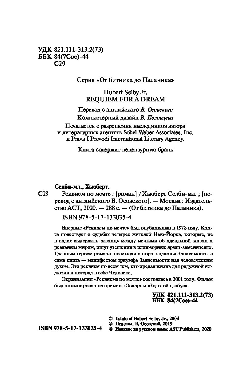 —Книга «Реквием по мечте» Селби-мл. Хьюберт