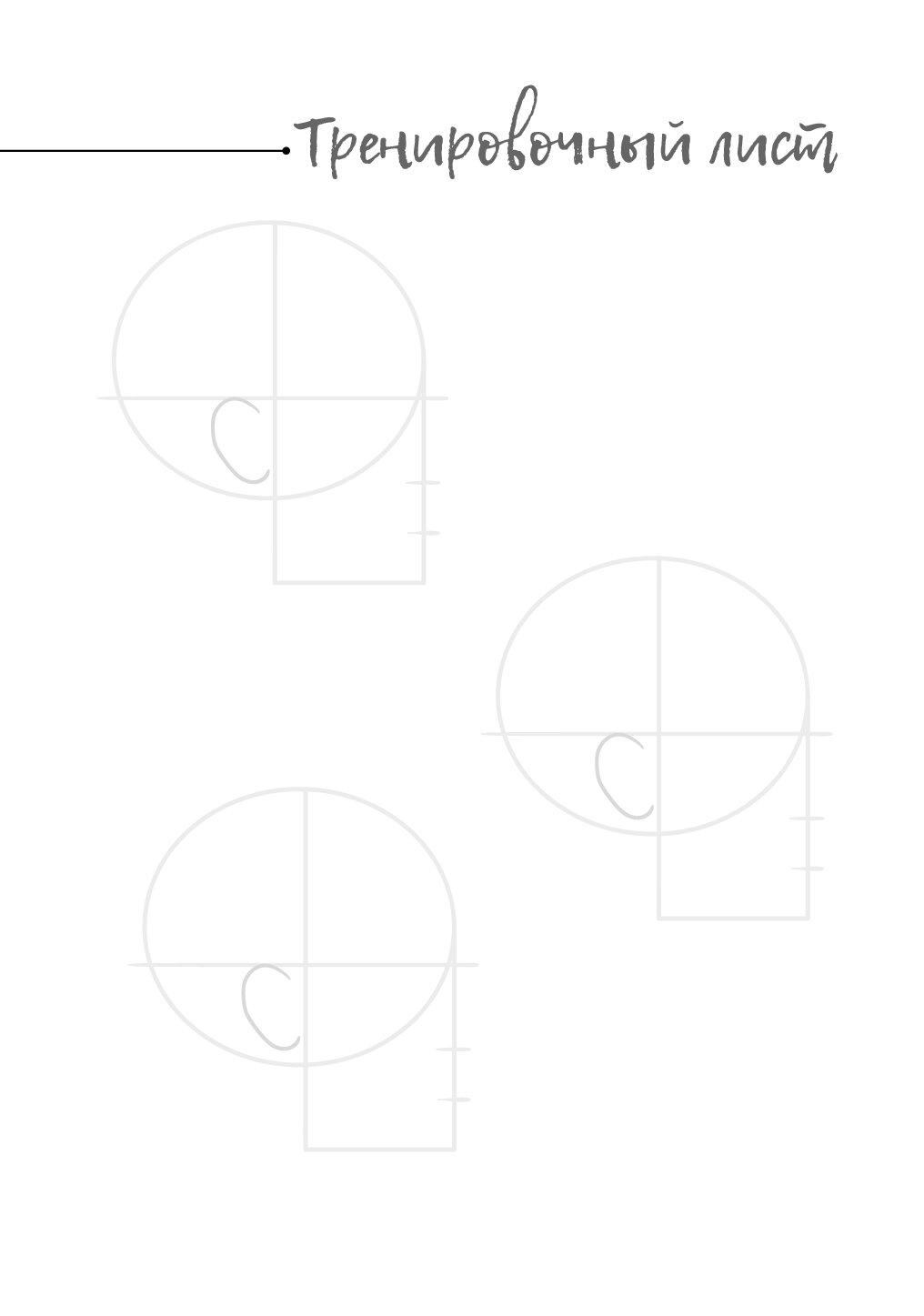 Тренировочные листы помогают закрепить навыки и сильно облегчают вам задачу. Например, для того, чтобы отработать технику рисования носа на лице, вам не нужно рисовать все остальное — тренируйтесь рисовать нос на готовом шаблоне лица!