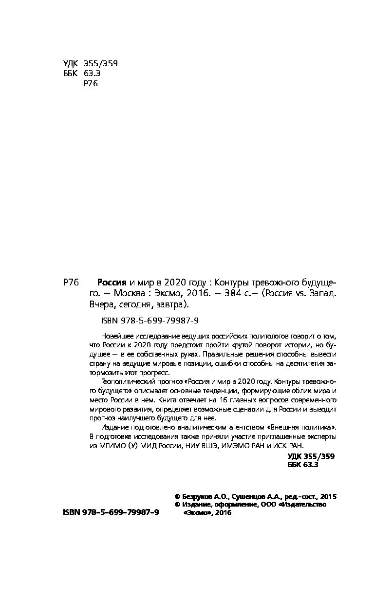 —Книга «Россия и мир в 2020 году. Контуры тревожного будущего» Безруков А.О., Сушенцов А.А., ред.