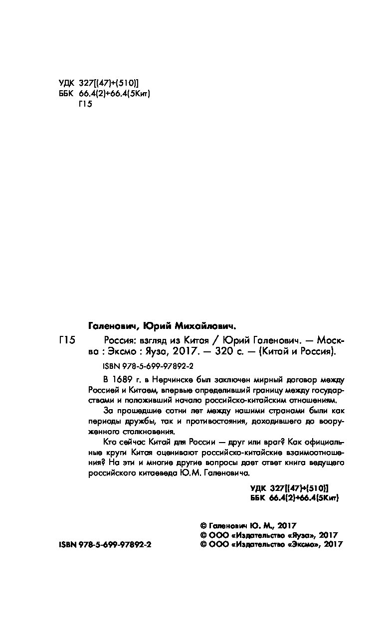 —Книга «Россия: взгляд из Китая» Галенович Ю.М.