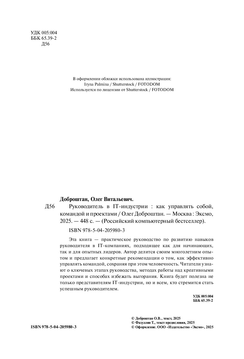 — «Руководитель в IT-индустрии. Как управлять собой, командой и проектами» Доброштан О.В.