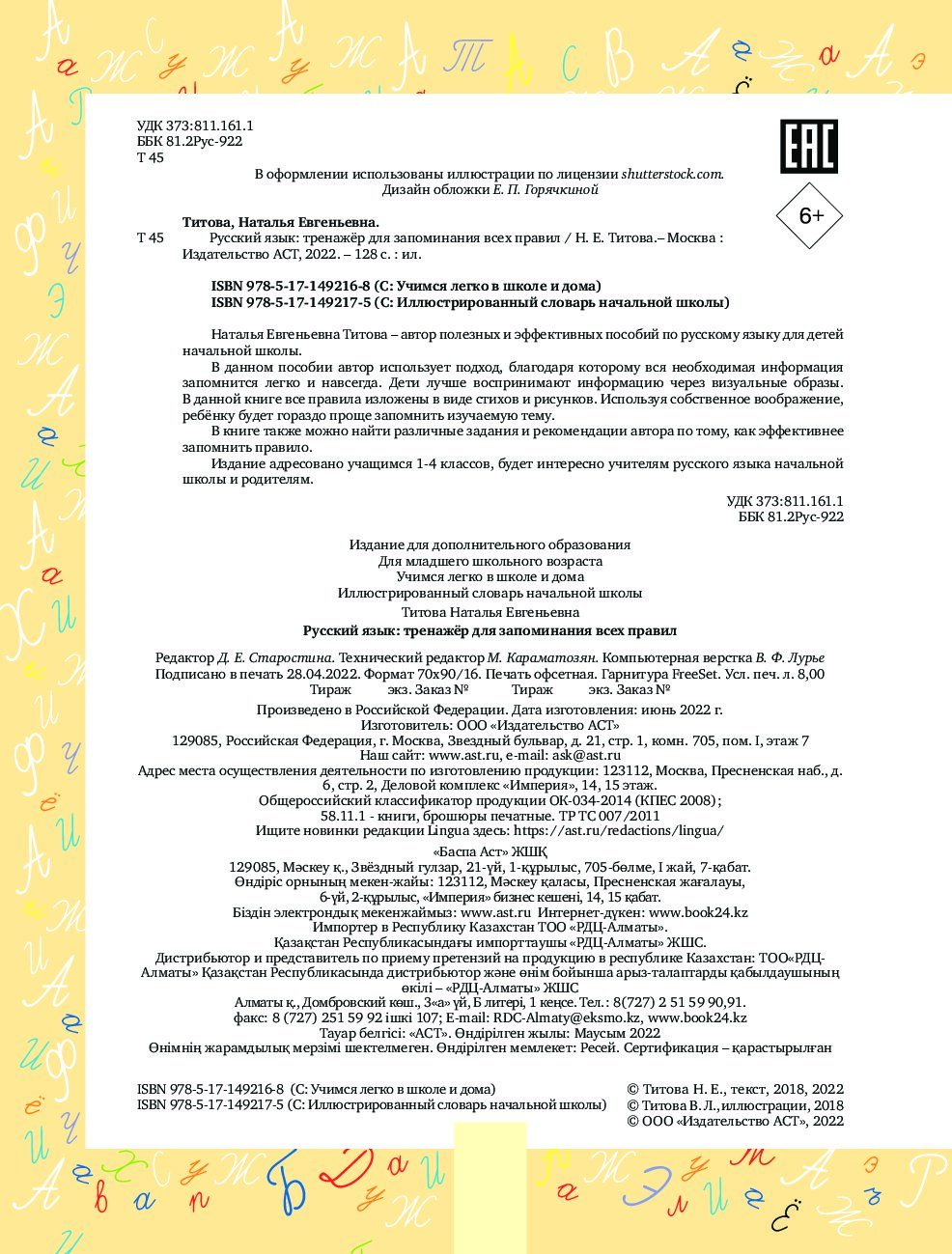 — «Русский язык: тренажёр для запоминания всех правил» Титова Н.Е.