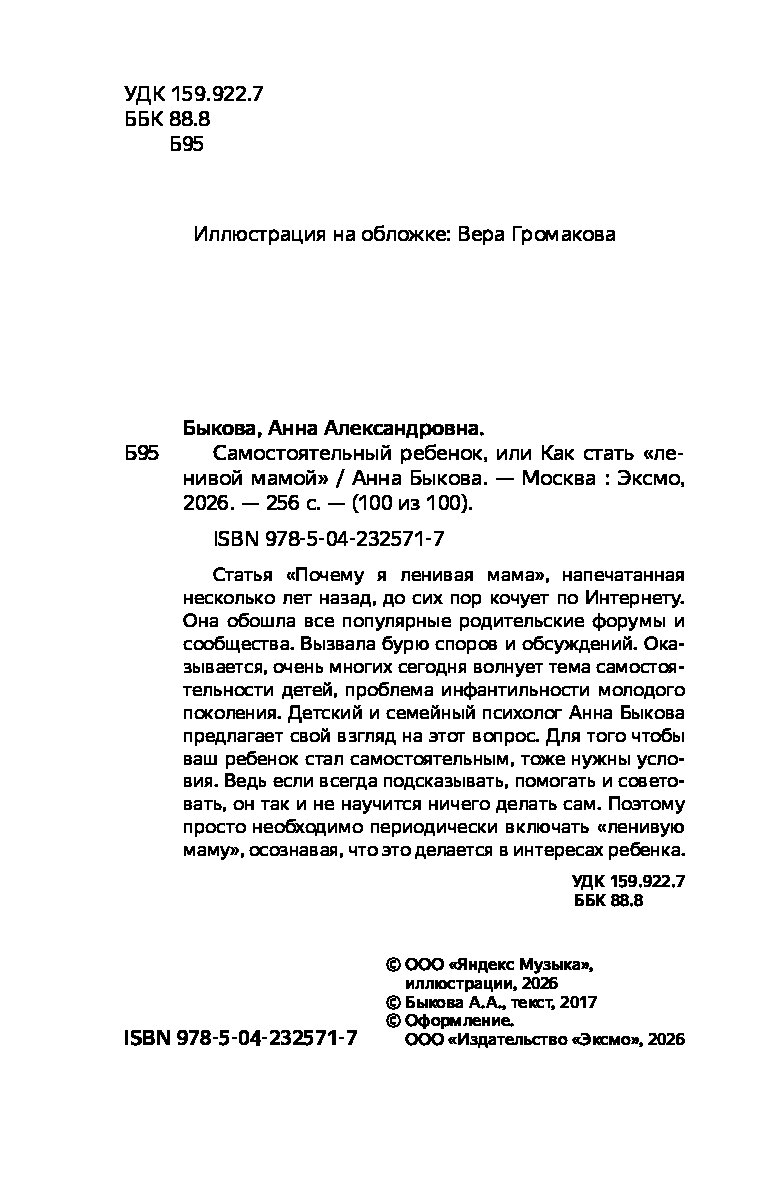 — «Самостоятельный ребенок, или Как стать "ленивой мамой" (Яндекс книги)» Быкова Анна