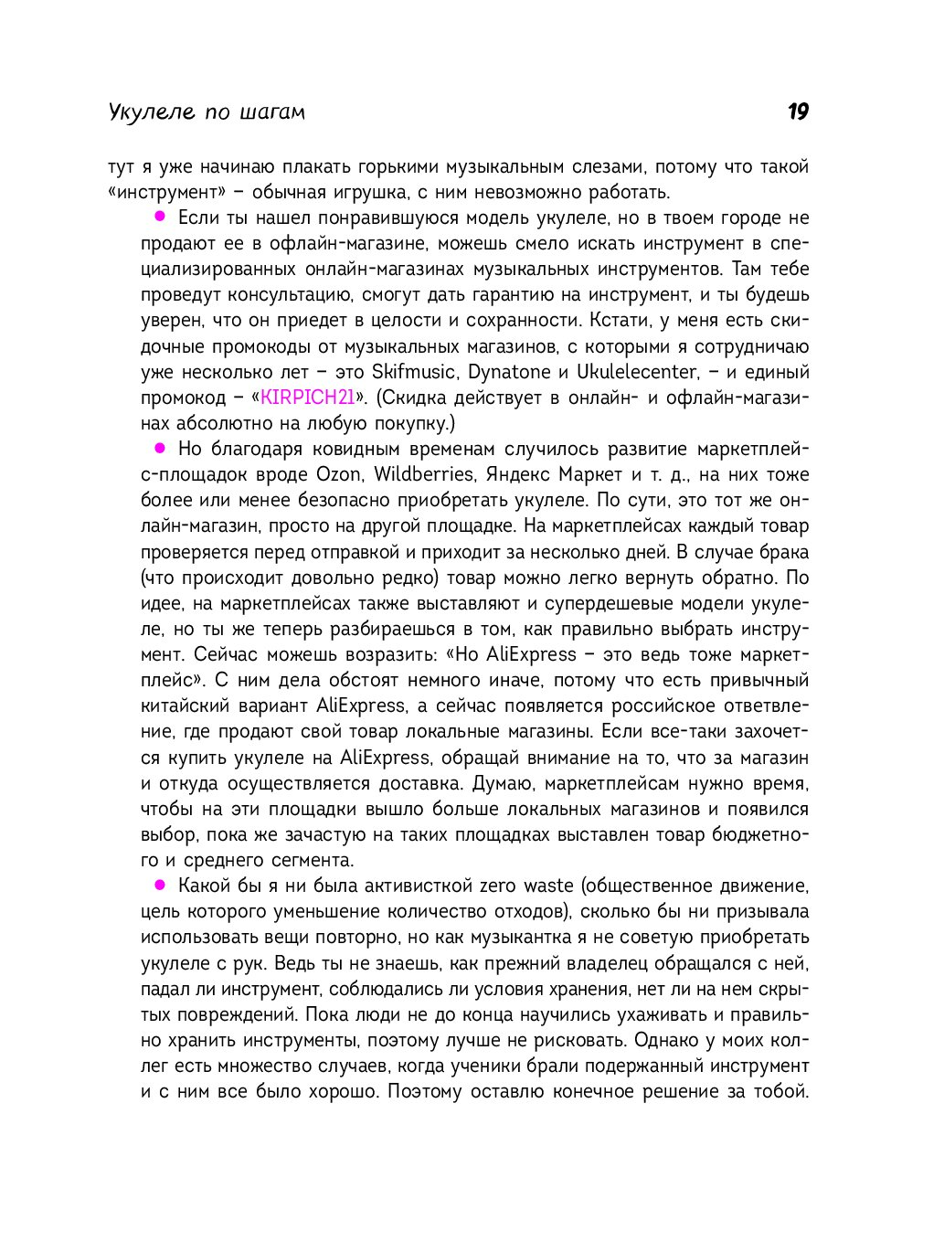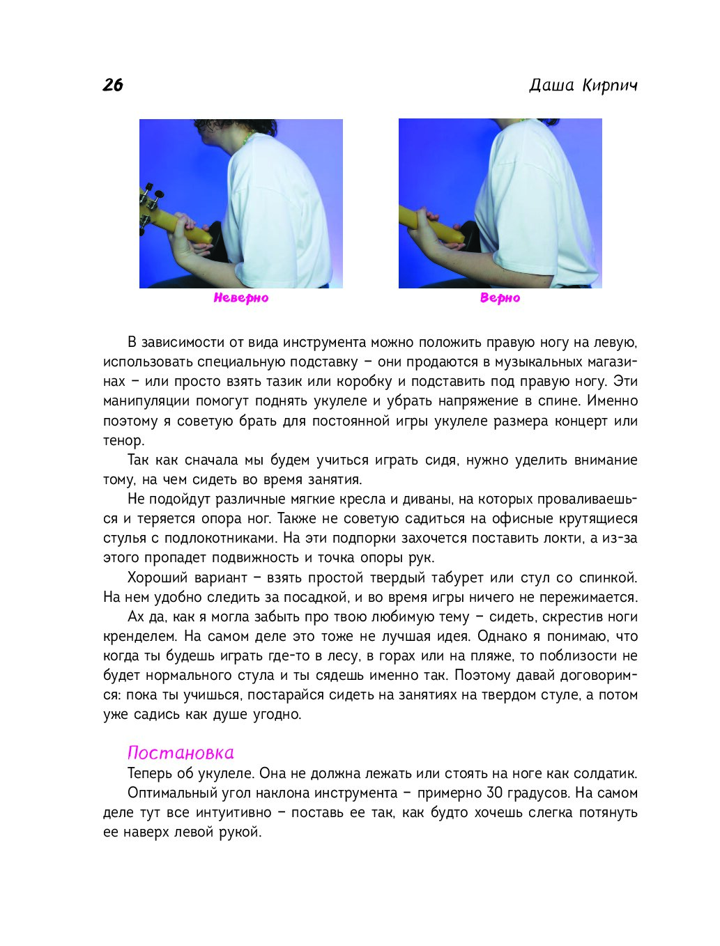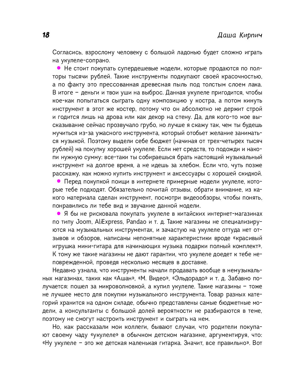 Профессиональная музыкантка, блогерка и преподавательница Даша Кирпич расскажет тебе, как легко и быстро освоить инструментальную игру на укулеле. После изучения этой книги ты не только разучишь аккорды и ноты, но и узнаешь азы музыкальной теории, изучишь расположение нот на инструменте и выучишь сложные техники, баррэ, переборы и т.д. В конце книги, как и раньше, находятся словарь терминов и укутрекер для отслеживания прогресса.