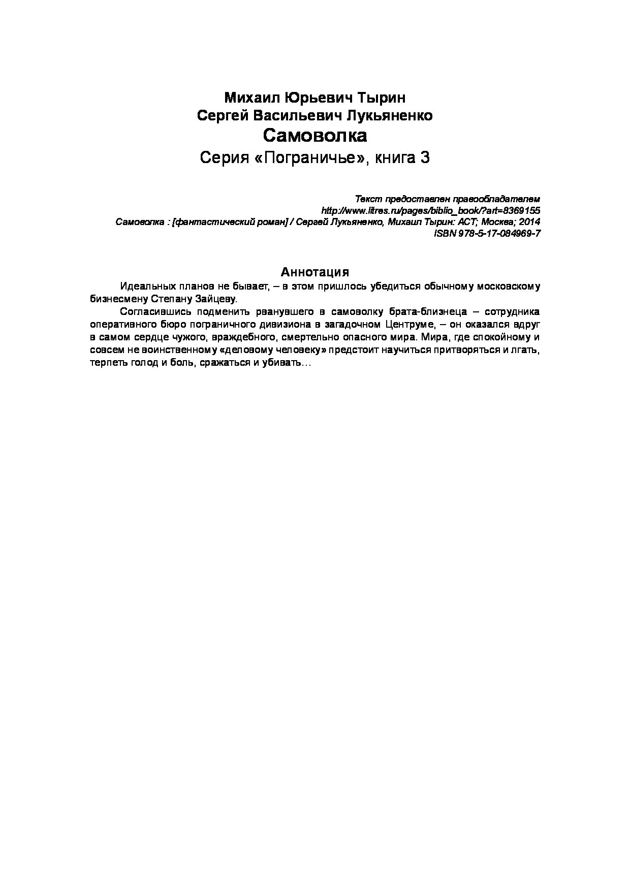 —Книга «Самоволка» Лукьяненко С.В.