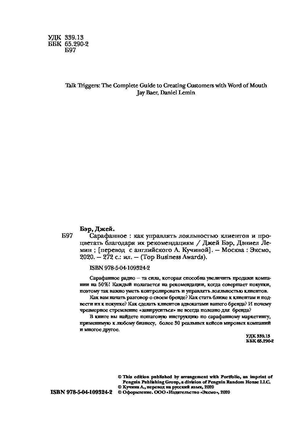 —Книга «Сарафанное. Как управлять лояльностью клиентов и процветать благодаря их рекомендациям» Бэр Д., Лемин Д.