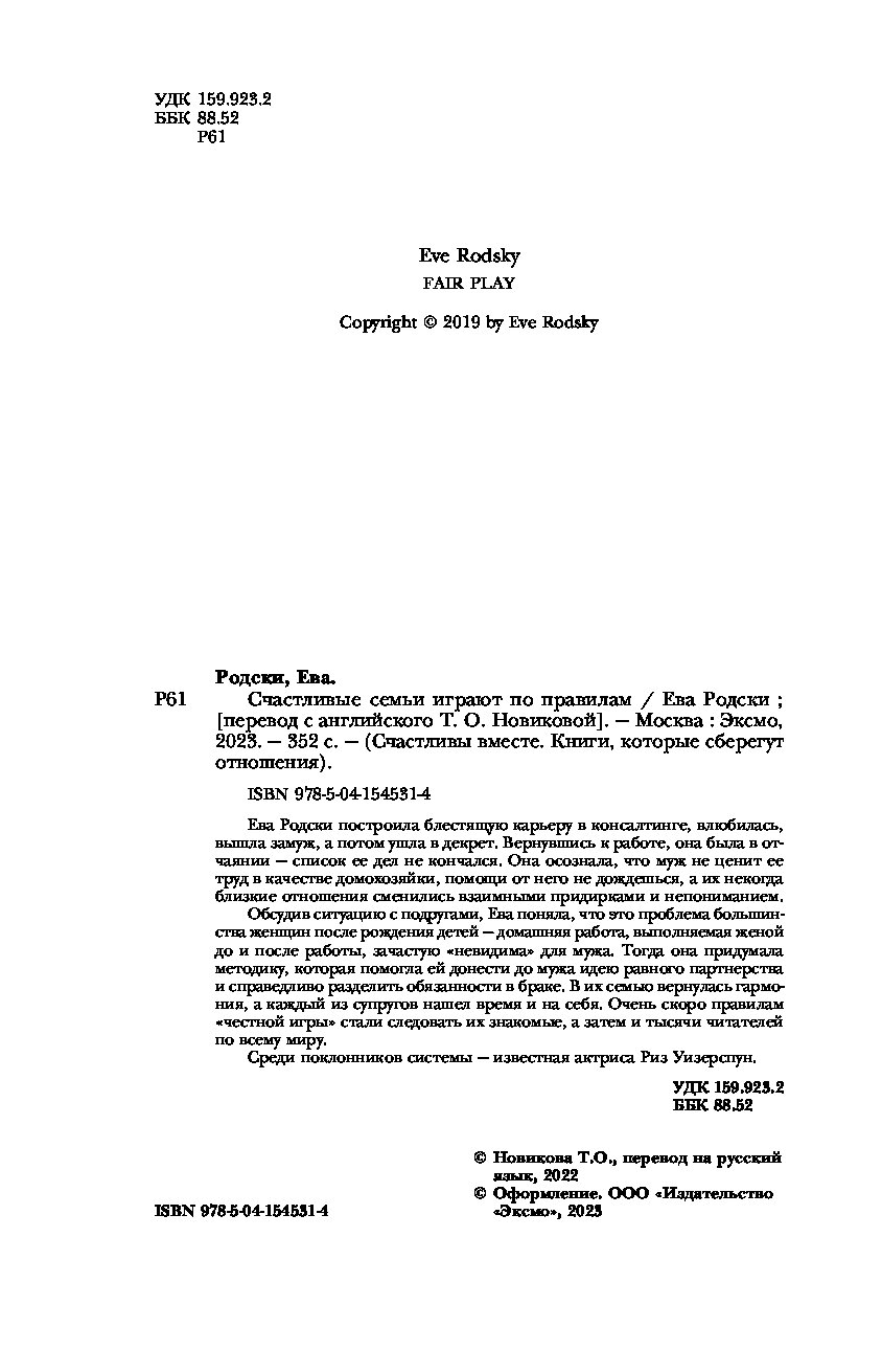 «Книга Евы Родски предлагает практические инструменты для достижения мира в семье и минимизации конфликтов и недопонимания между супругами». — Лора Вандеркам, автор книг «Волшебное утро», «Чувство штиля» и «Школа Джульетты»