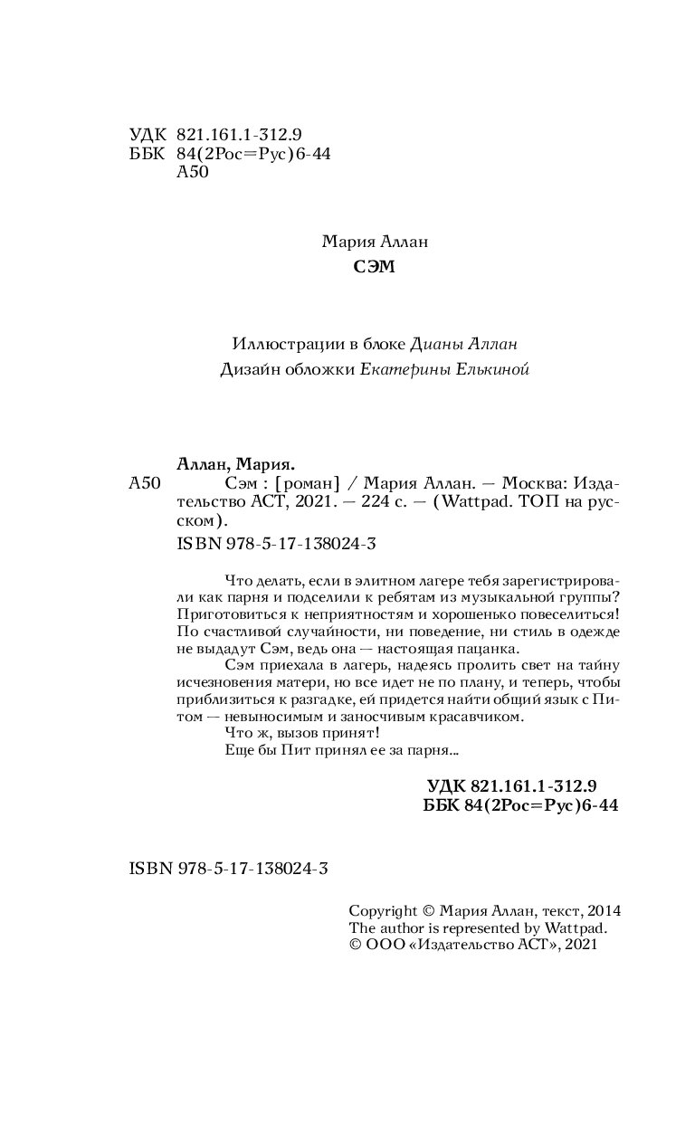 Если вы хотите заказать и купить книгу Сэм недорого с доставкой, то в интернет-магазине Book24.kz сделать это можно простым и удобным способом, оформив заказ в режиме онлайн. Для удобства выбора все книги распределены по разделам и подразделам, к тому же, благодаря навигации, поиск необходимого издания займет у вас всего несколько минут. У нас на сайте вы можете ознакомиться с кратким содержанием книги, почитать отзывы покупателей и просмотреть фото. Адресную доставку заказов по Казахстану гарантируем. Отправляем Казпочтой книги во все города книгу в Алматы, Астана, Актау, Актобе, Атырау, Караганда, Кокшетау, Костанай, Кызылорда, Павлодар, Петропавловск, Талдыкорган, Тараз, Уральск, Усть-Каменогорск, Шымкент, и другие города. Доставка занимает 1-9 дней. У нас выгодные условия продажи, в чем вы убедитесь, воспользовавшись нашим сервисом.