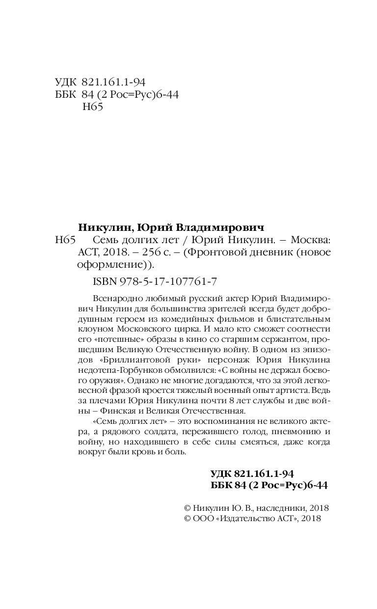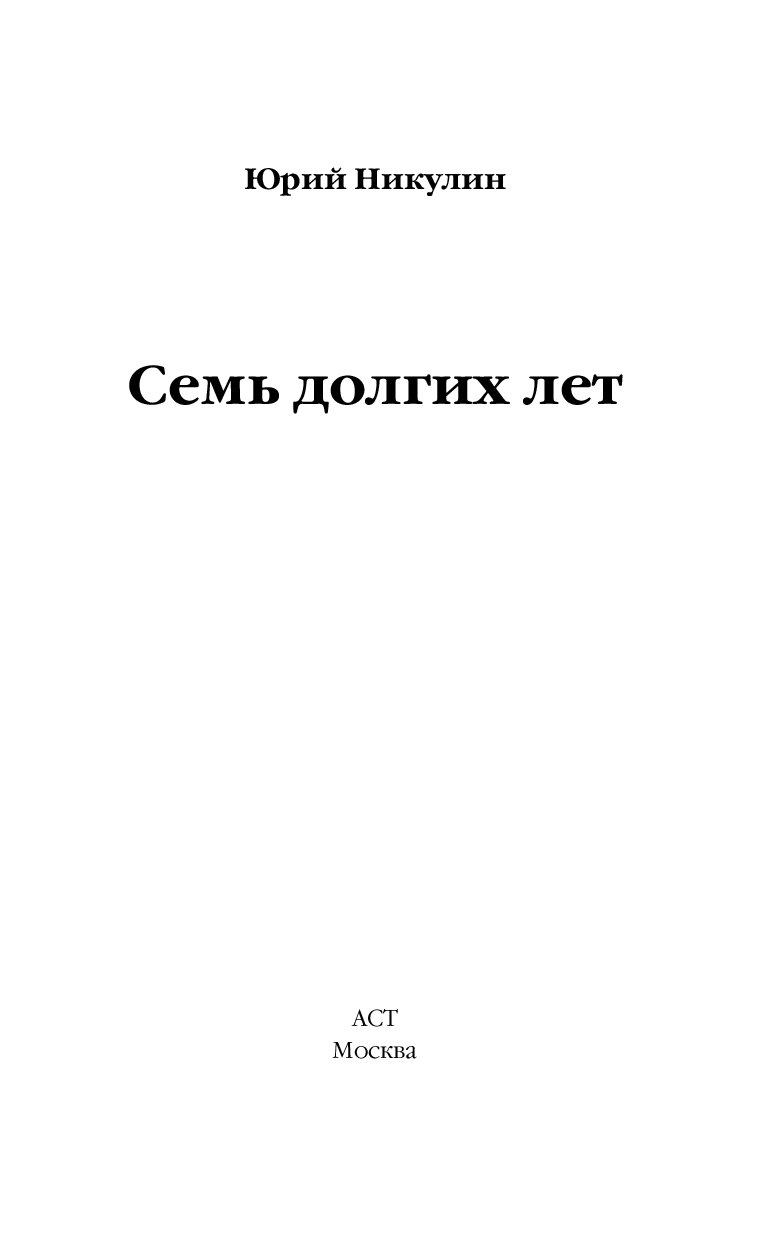 —Книга «Семь долгих лет» Никулин Ю.В.