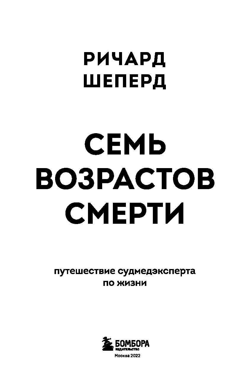 «Новая книга Ричарда Шеперда "Семь возрастов смерти" будет интересна как профессионалам в области судебной медицины и криминалистики, так и людям, далеким от медицины, но увлеченным темой расследования преступлений. Читатель узнает о громких, часто необычных и запутанных уголовных делах, о специфике работы судебно-медицинского эксперта как на месте происшествия, так и непосредственно на своём рабочем месте — в секционном зале морга.